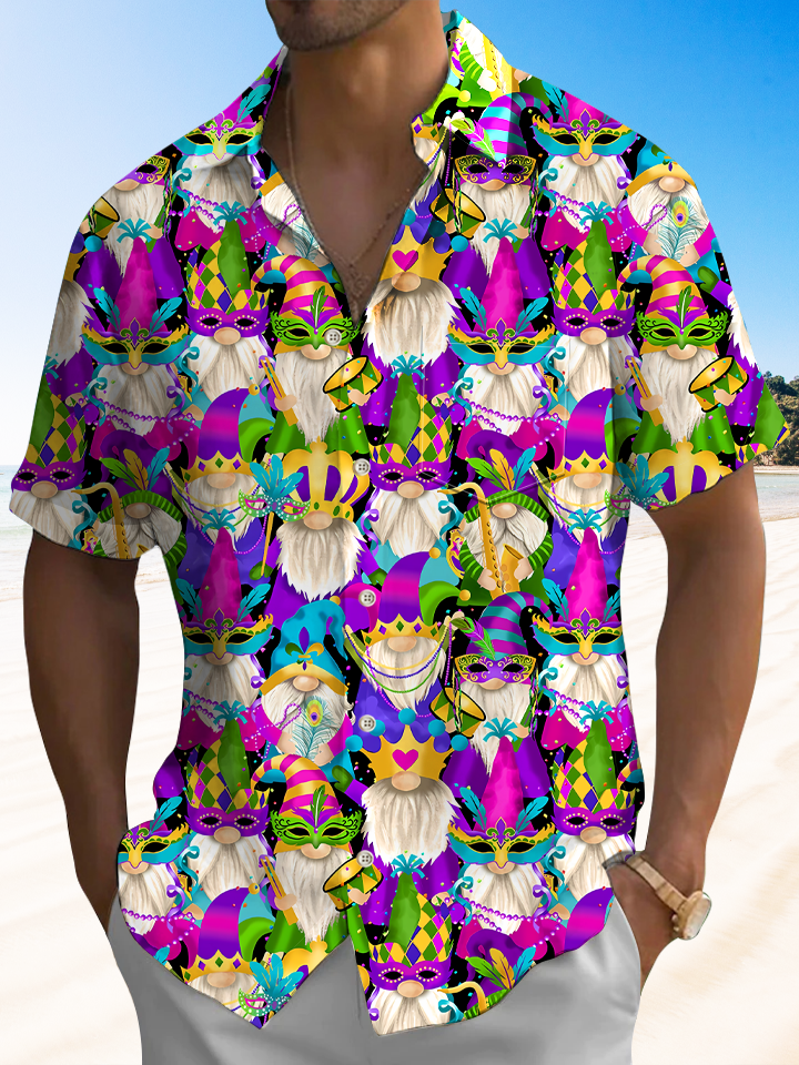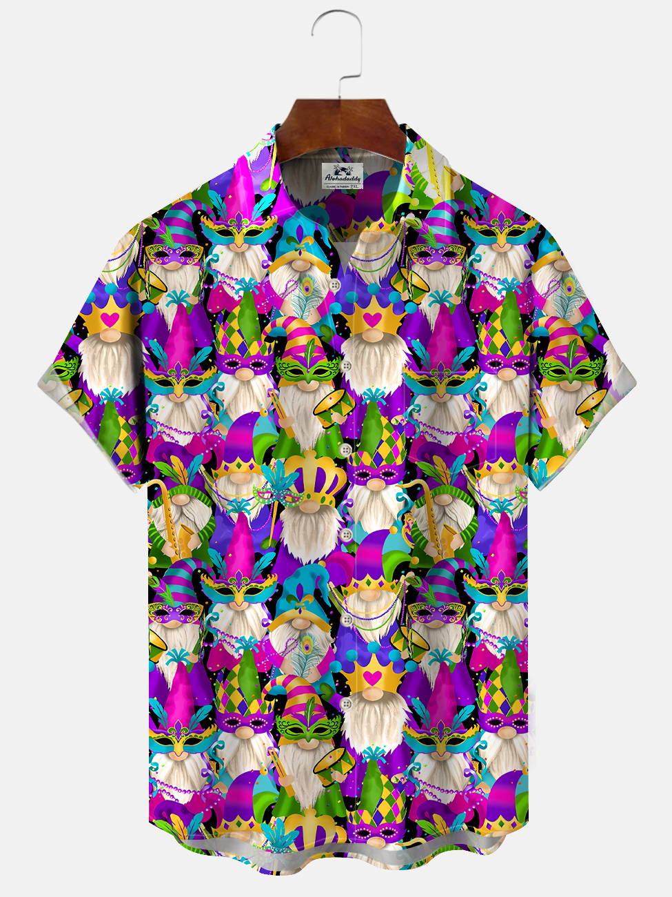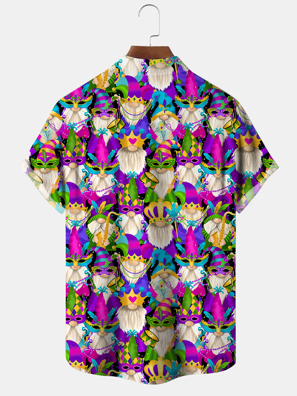 Alohadaddy Mask Carnival Button Pocket Casual Short Sleeve Shirt