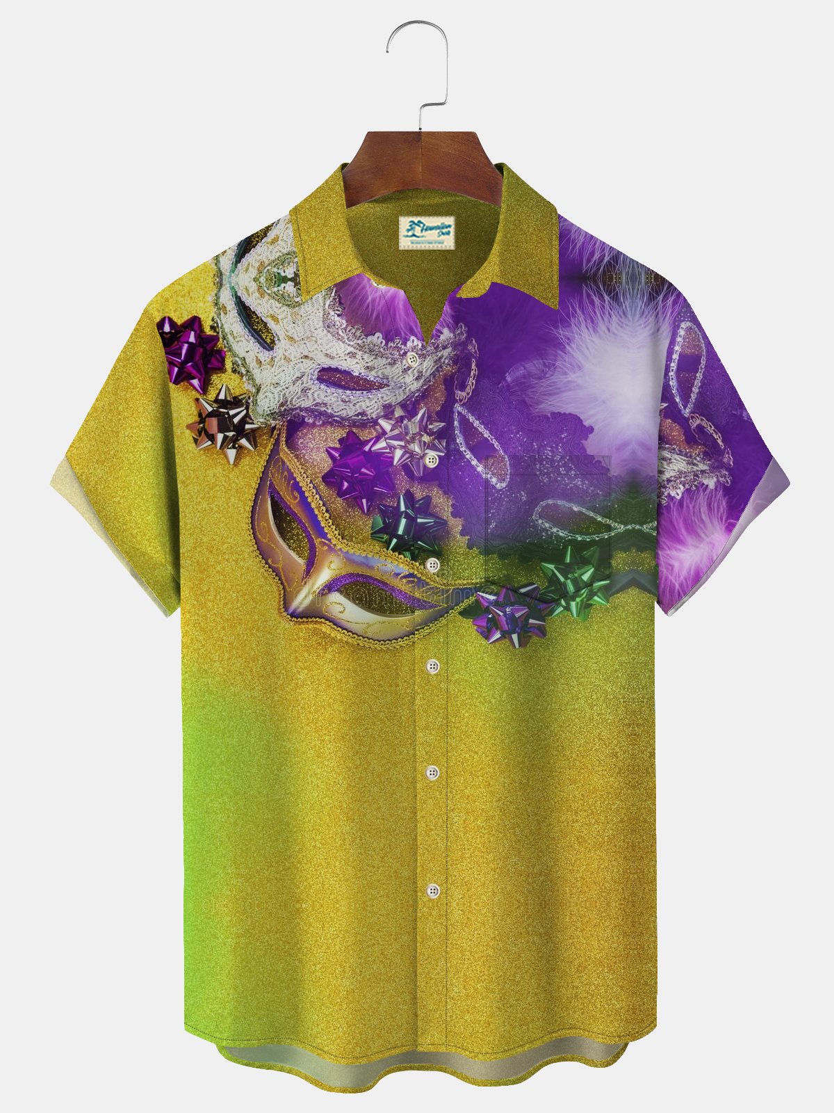 Camisa hawaiana elástica para hombre Alohadaddy Masquerade Carnival Resort Camisa con bolsillo para campamento Aloha