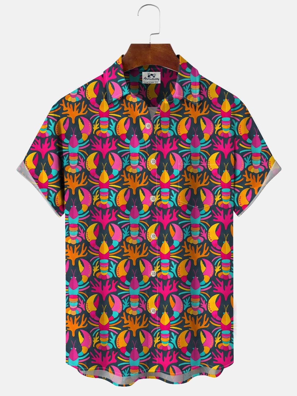 Alohadaddy Ocean Shrimp Button Pocket Casual Short Sleeve Shirt