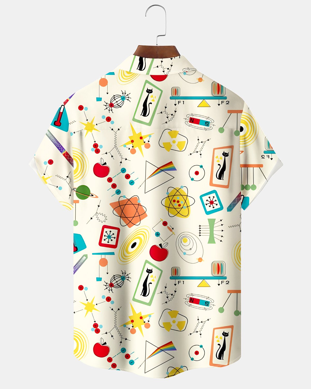 Alohadaddy® Retro Geometric Atom Modern Cat Short-Sleeve Shirt