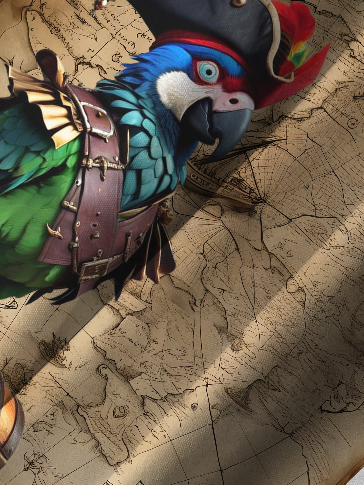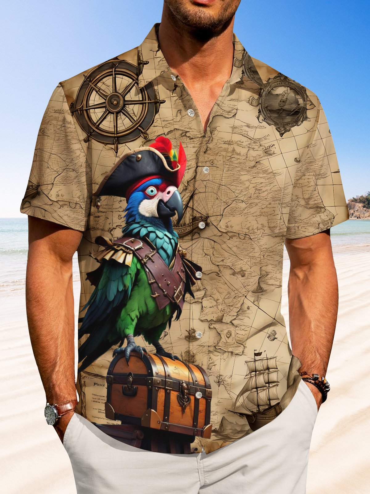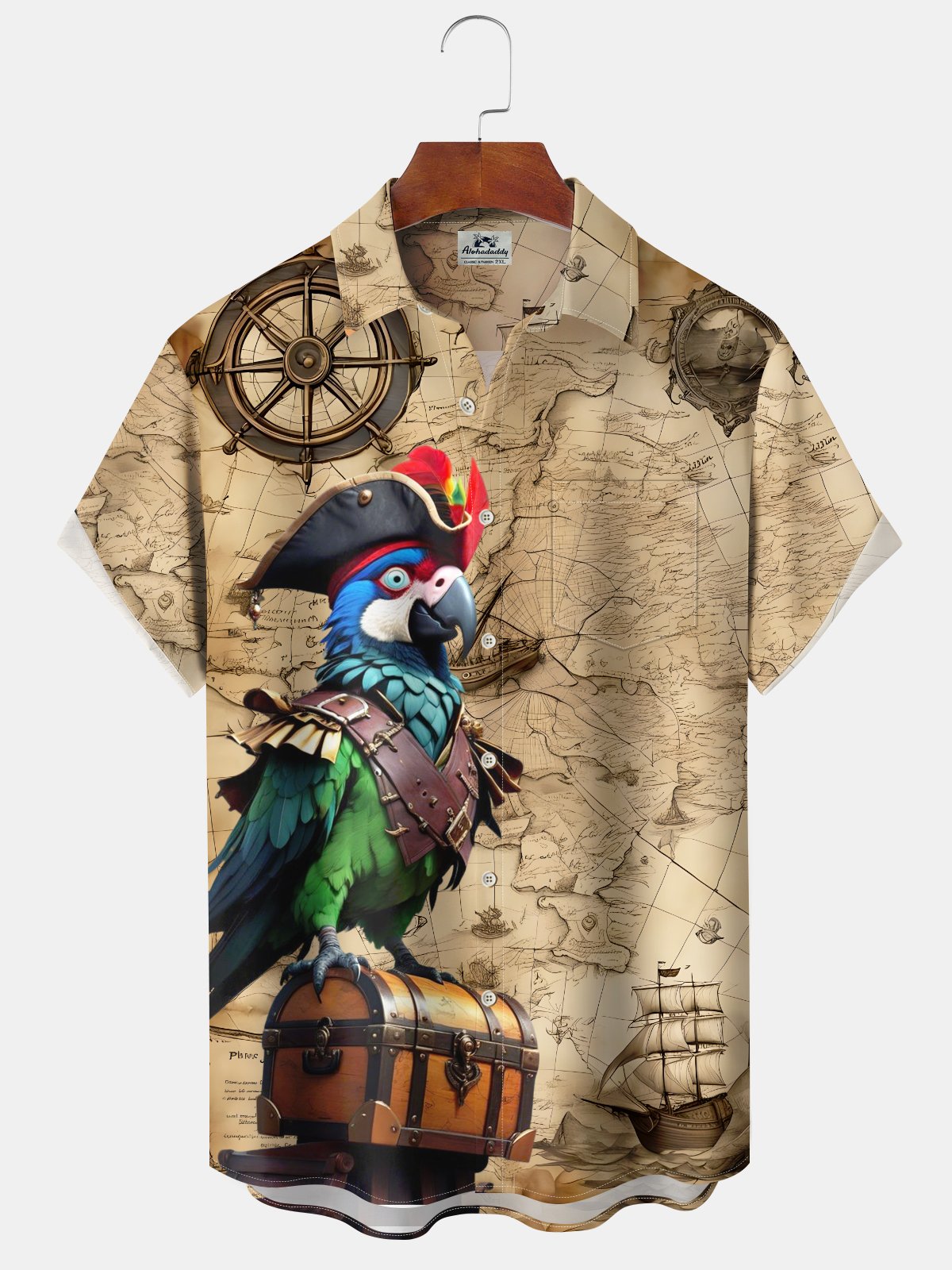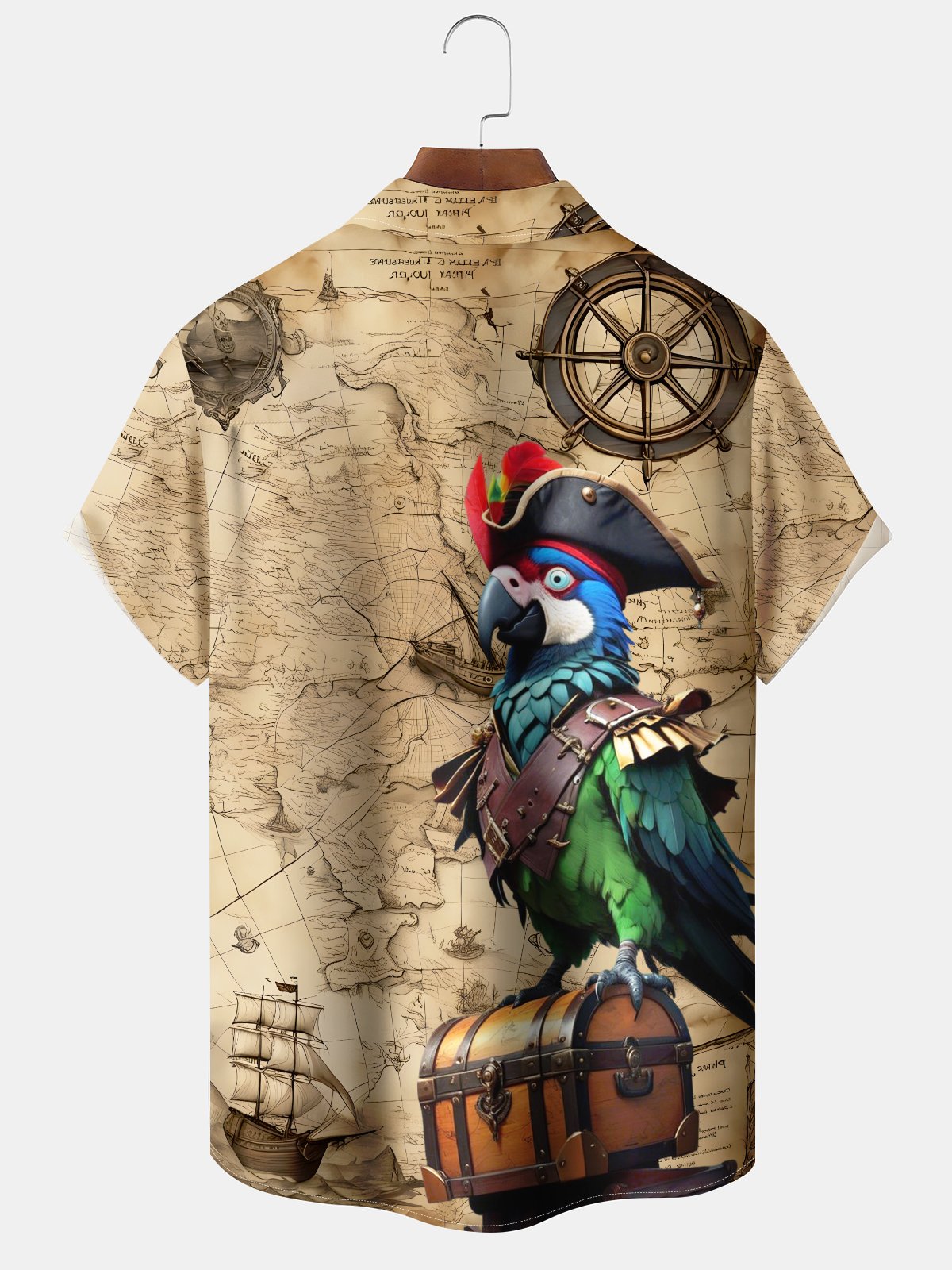 Alohadaddy Hawaiian Casual Nautical Chart Parrot Art Print Button Cardigan Pockets Stretch Oversized Polyester Short Sleeve Shirt