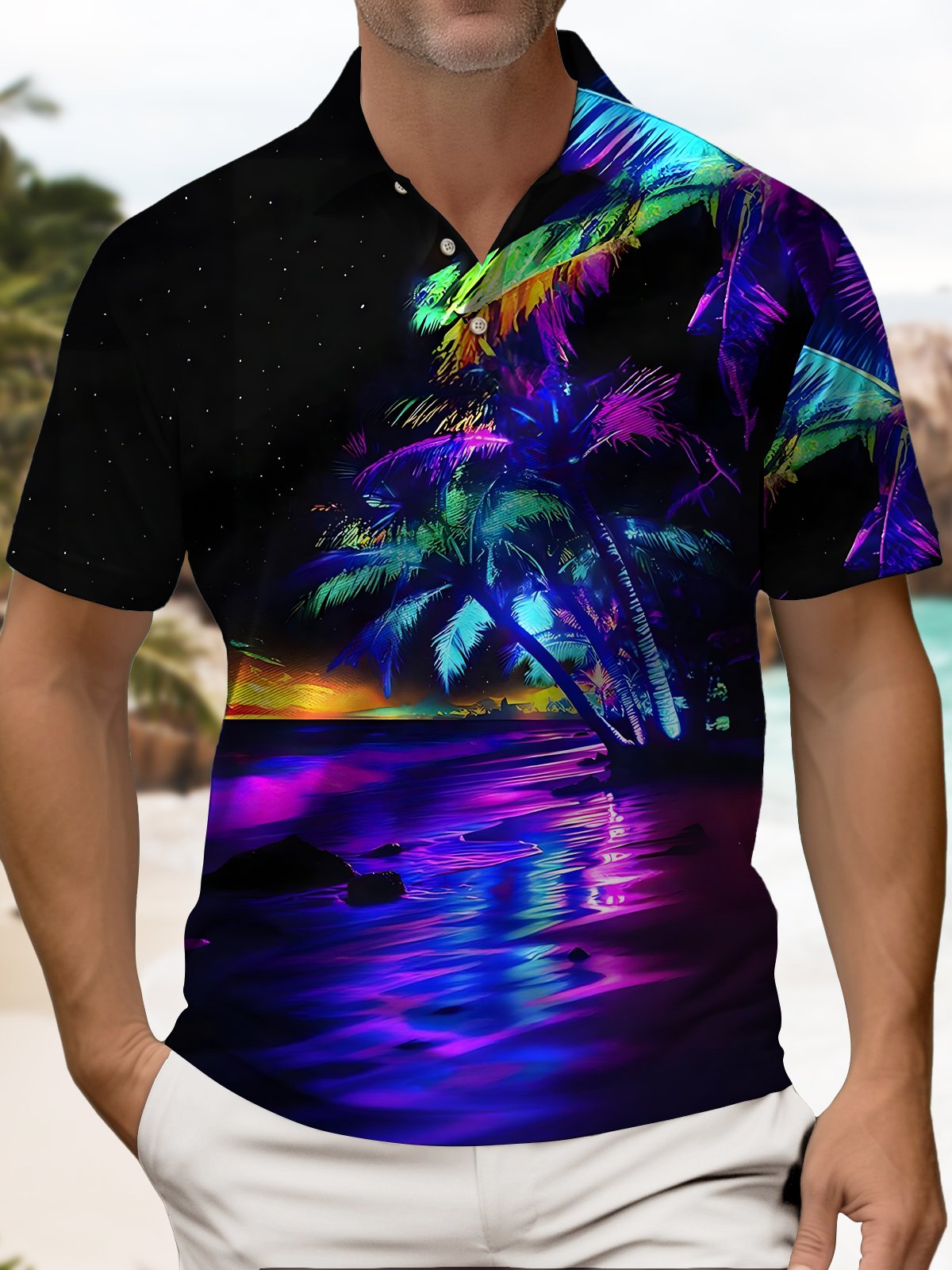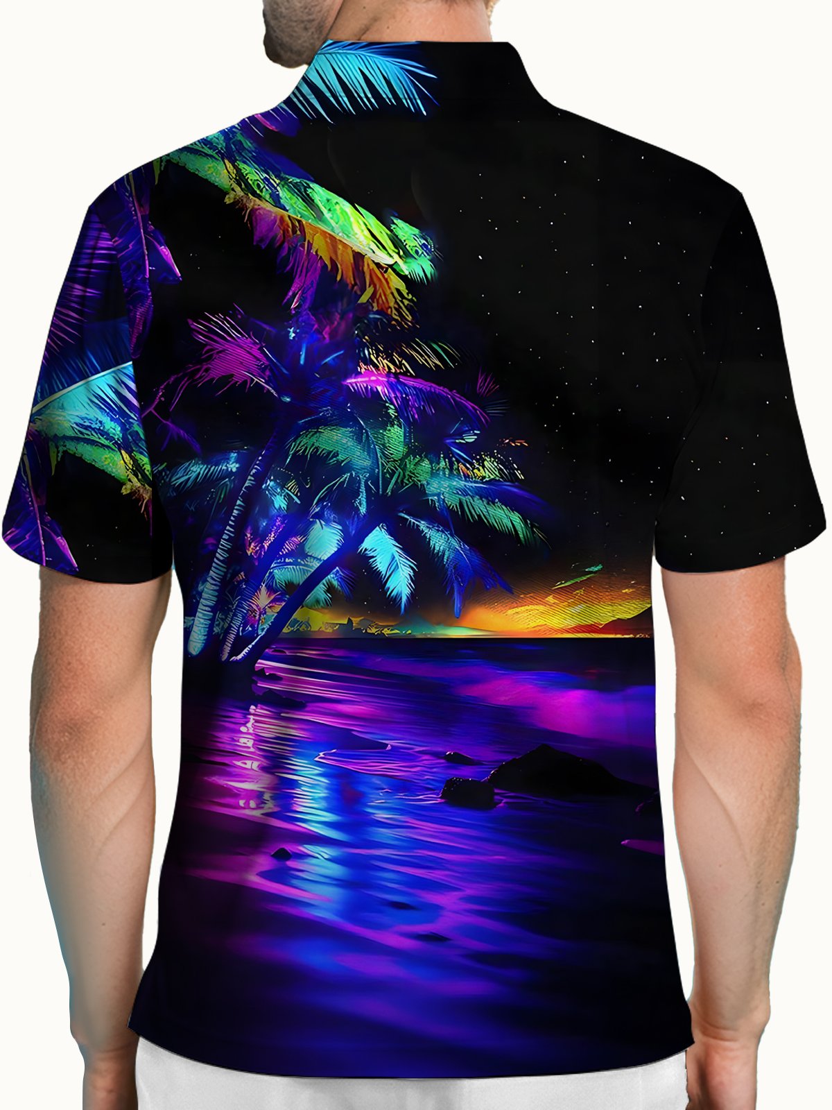 Alohadaddy® 3D Abstract Gradient Hawaiian Beach Coconut Tree Short-Sleeve Polo Shirt