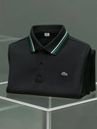 Alohadaddy® Business Basic Stripe Logo Button Stretch Men's Short Sleeve Polo Shirt Big & Tall