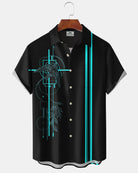 Alohadaddy® Casual Swallow Print Art Button Pocket Cardigan Men's Short Sleeve Shirt Big & Tall