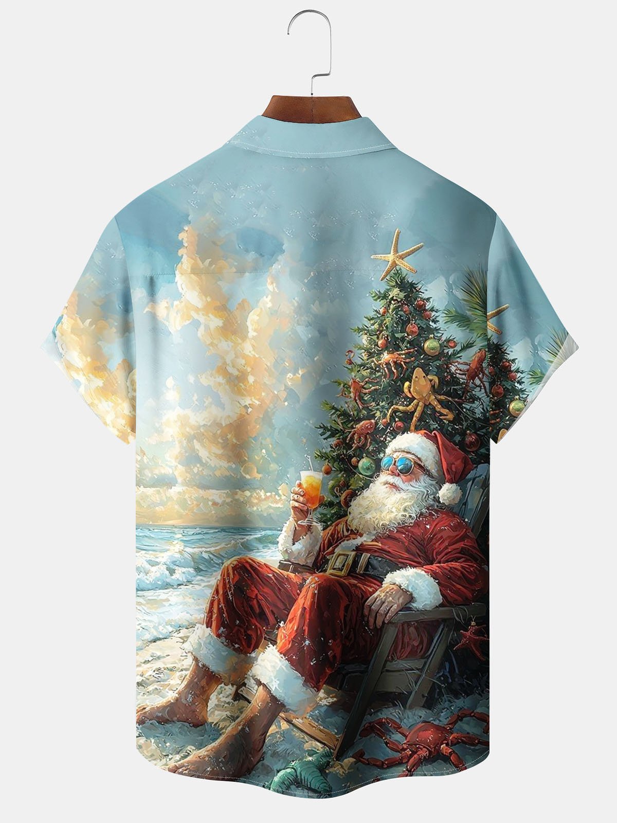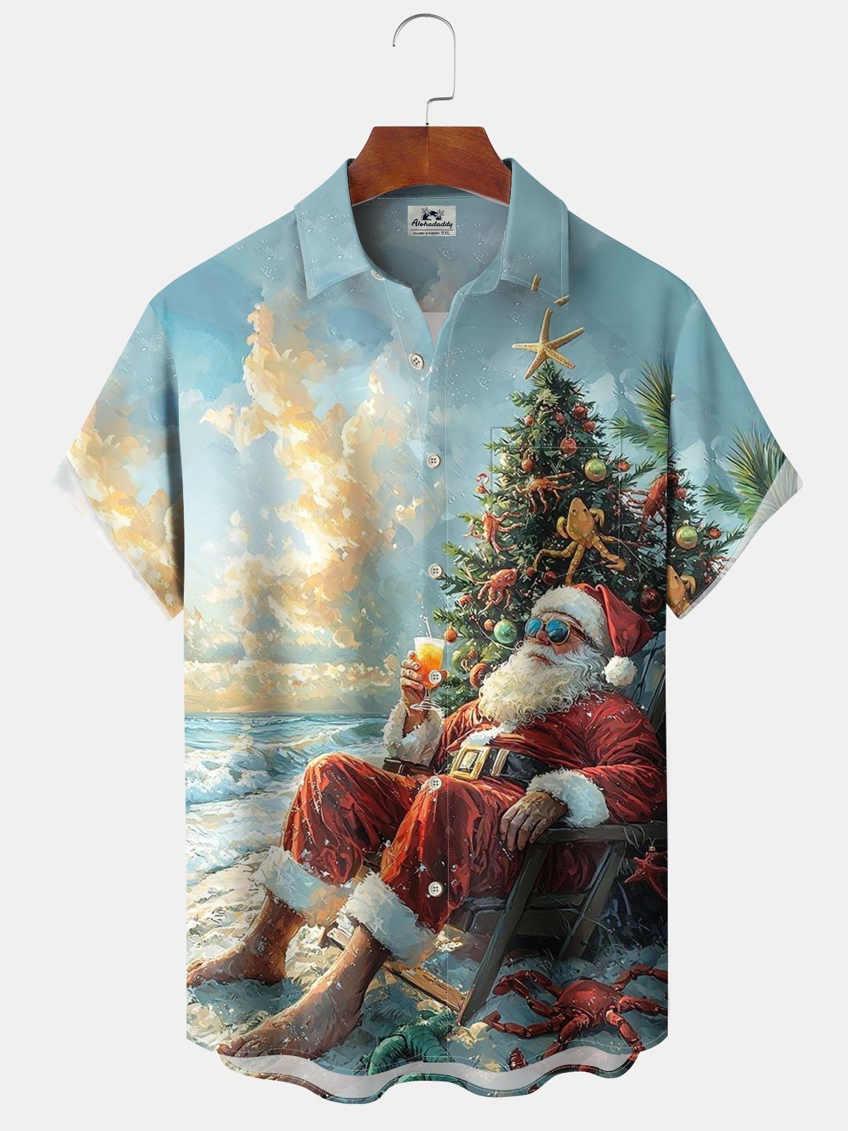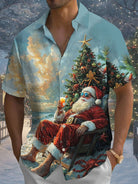 Alohadaddy® Christmas Santa Claus Print Pocket Elastic Button Men's Short Sleeve Shirt Big & Tall