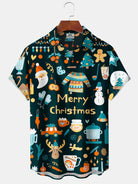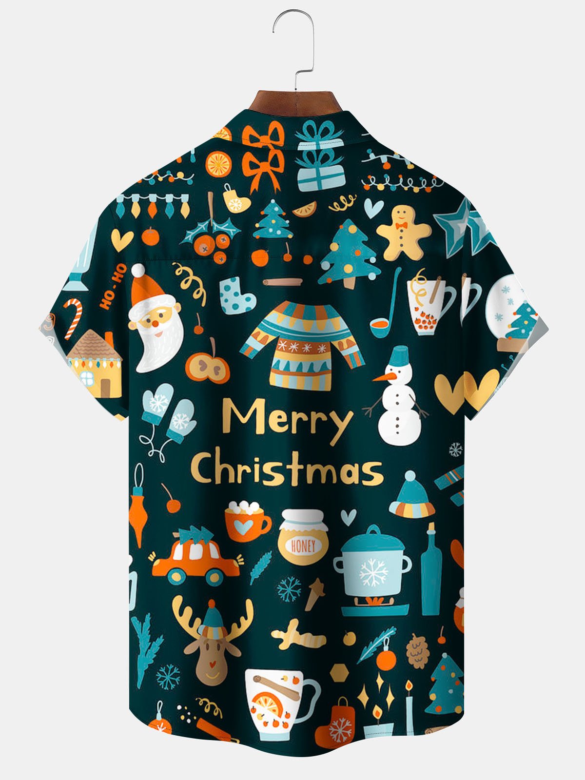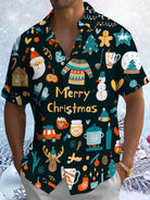 Alohadaddy® Christmas Snowman Printed Pockets Elastic Button Closure Men's Short Sleeve Shirt Big & Tall