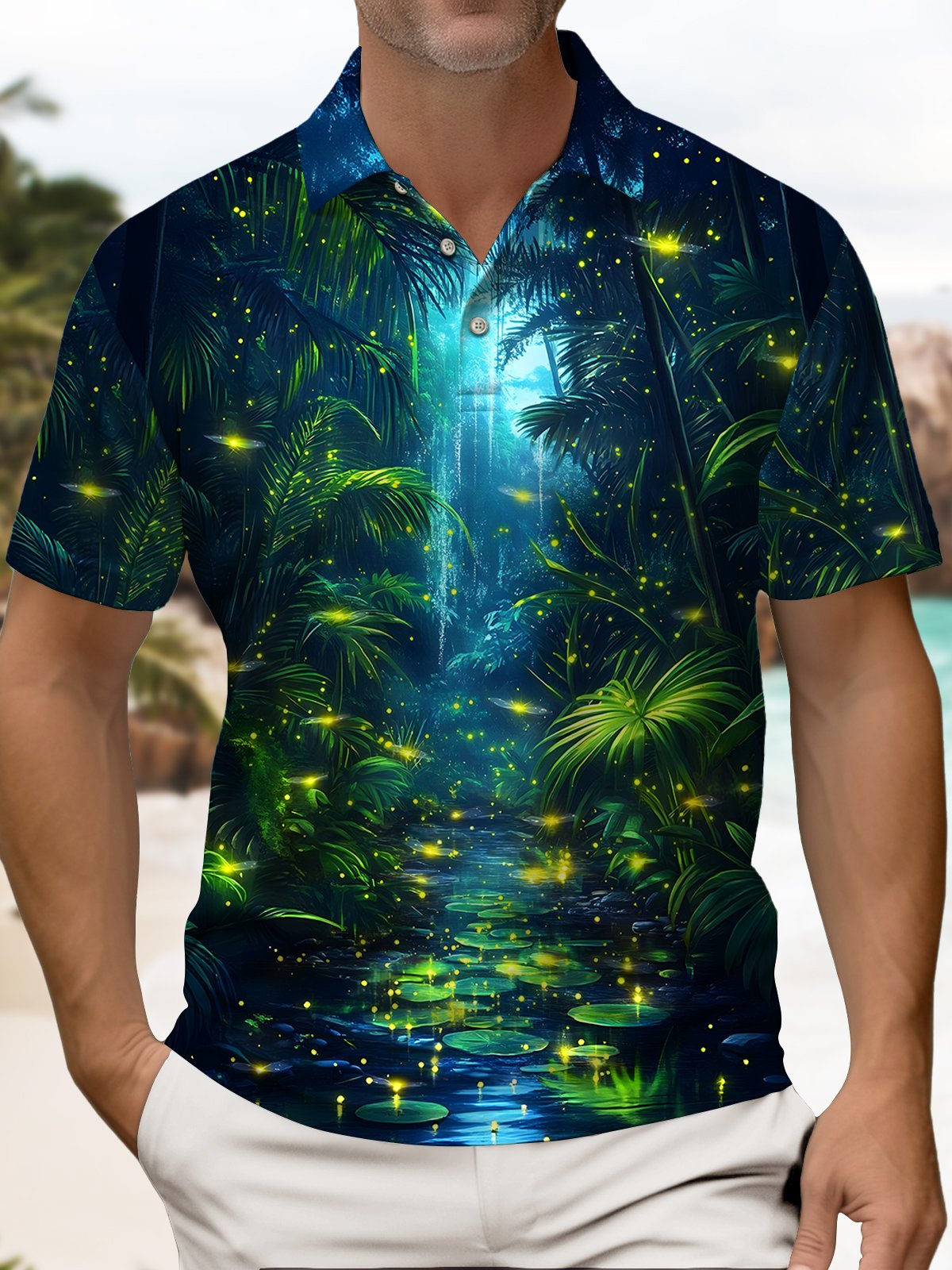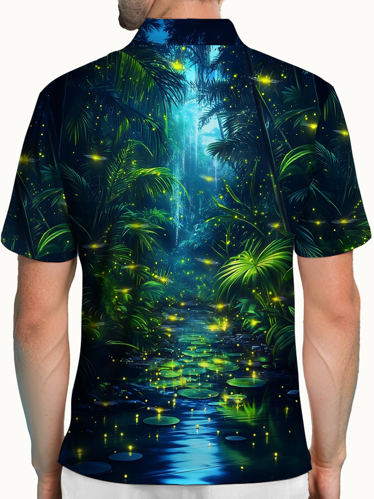 Alohadaddy® Hawaiian Forest Coconut Tree Firefly Short-Sleeved Polo Shirt