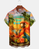 Alohadaddy® Hawaiian Parrot Vacation Print Pocket Stretch Men's Short Sleeve Shirt Big & Tall