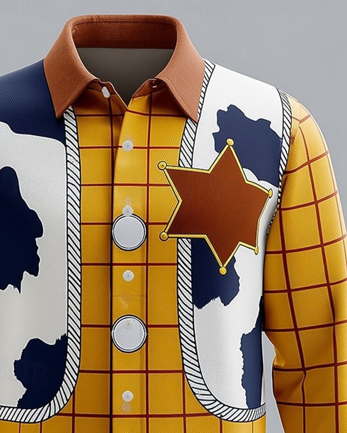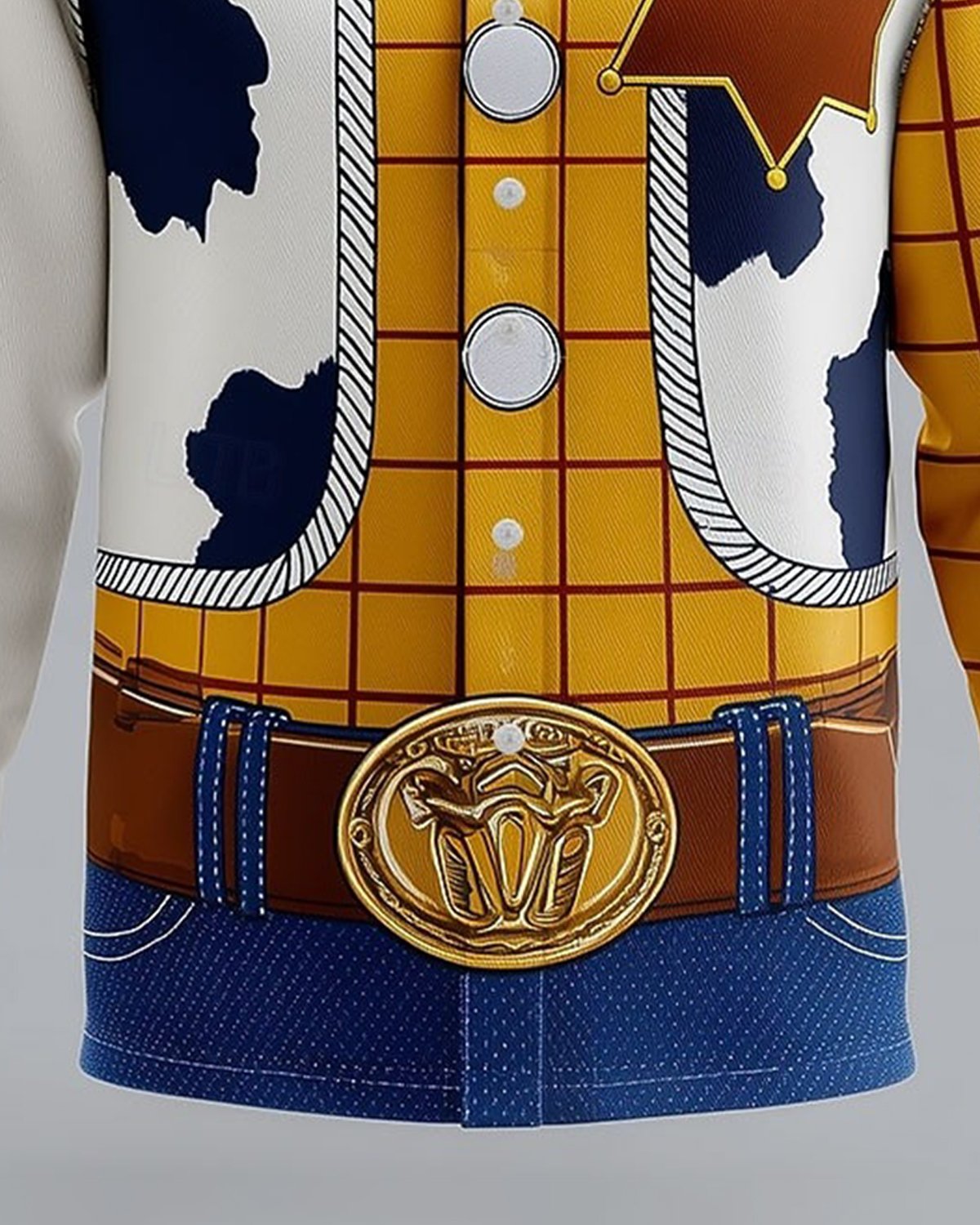 Alohadaddy® Holiday Retro Cartoon Cowboy Cosplay Men's Long-Sleeve Shirt