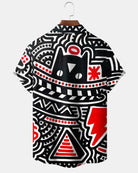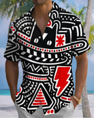 Alohadaddy® Retro Graffiti Print Art Pocket Button Stretch Men's Short Sleeve Shirt Big & Tall