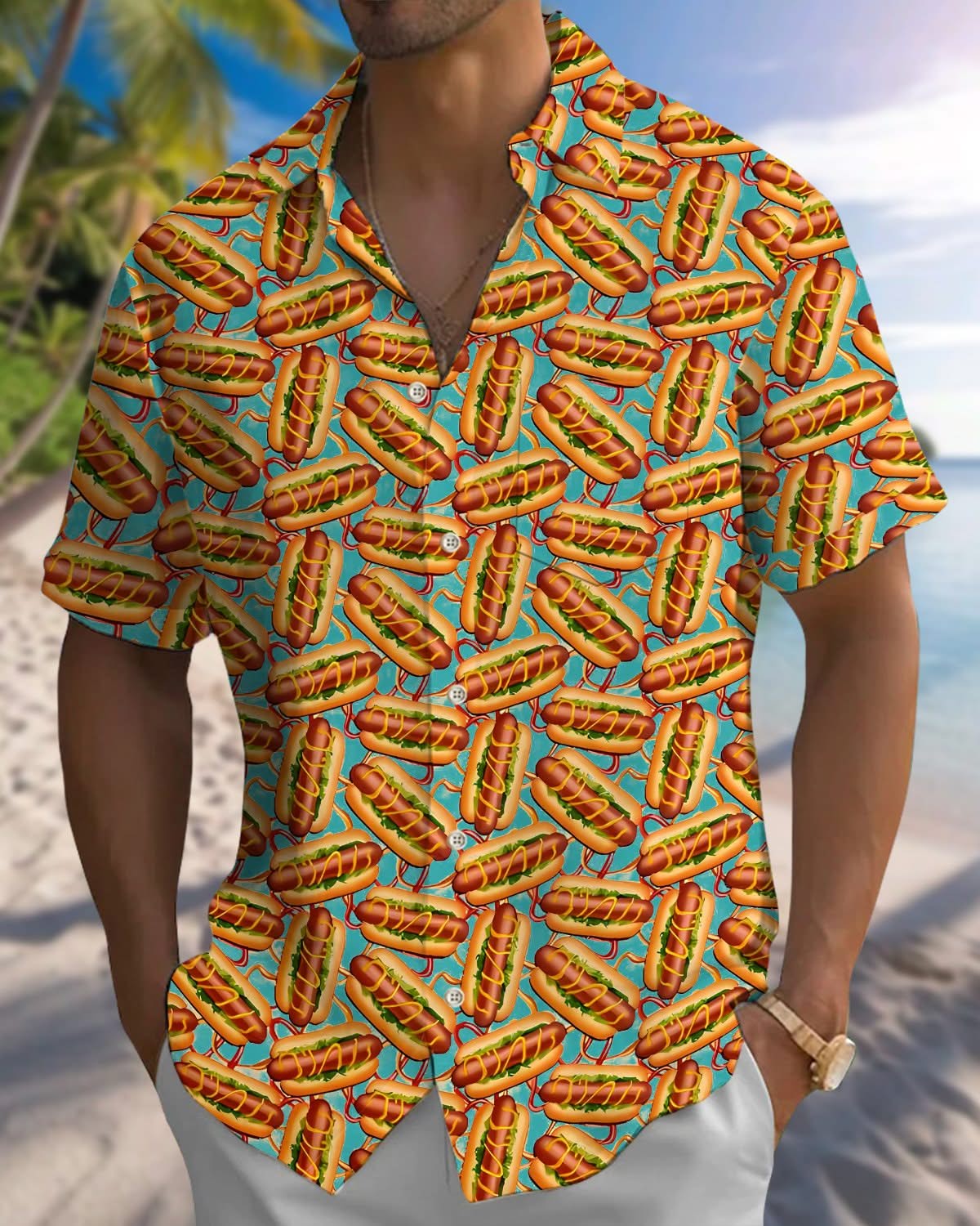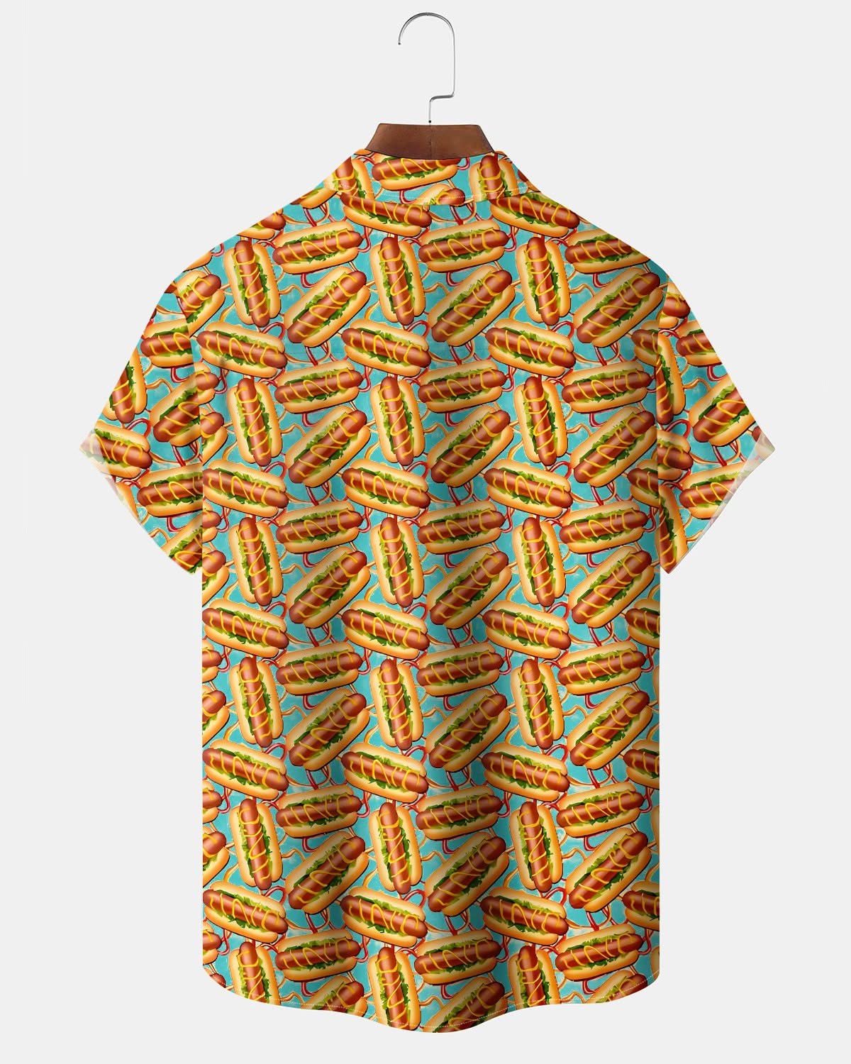 Alohadaddy® Retro Hot Dog Vacation Print Pocket Stretch Men's Short Sleeve Shirt Big & Tall