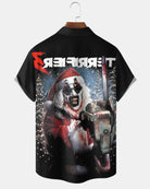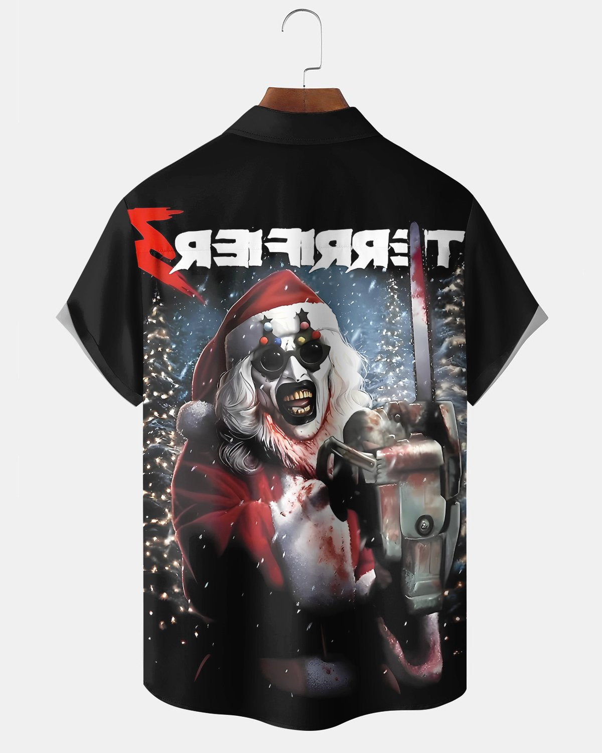 Alohadaddy® Scary Santa Print Men's Short Sleeve Shirt with Elastic Buttons Pockets Big & Tall