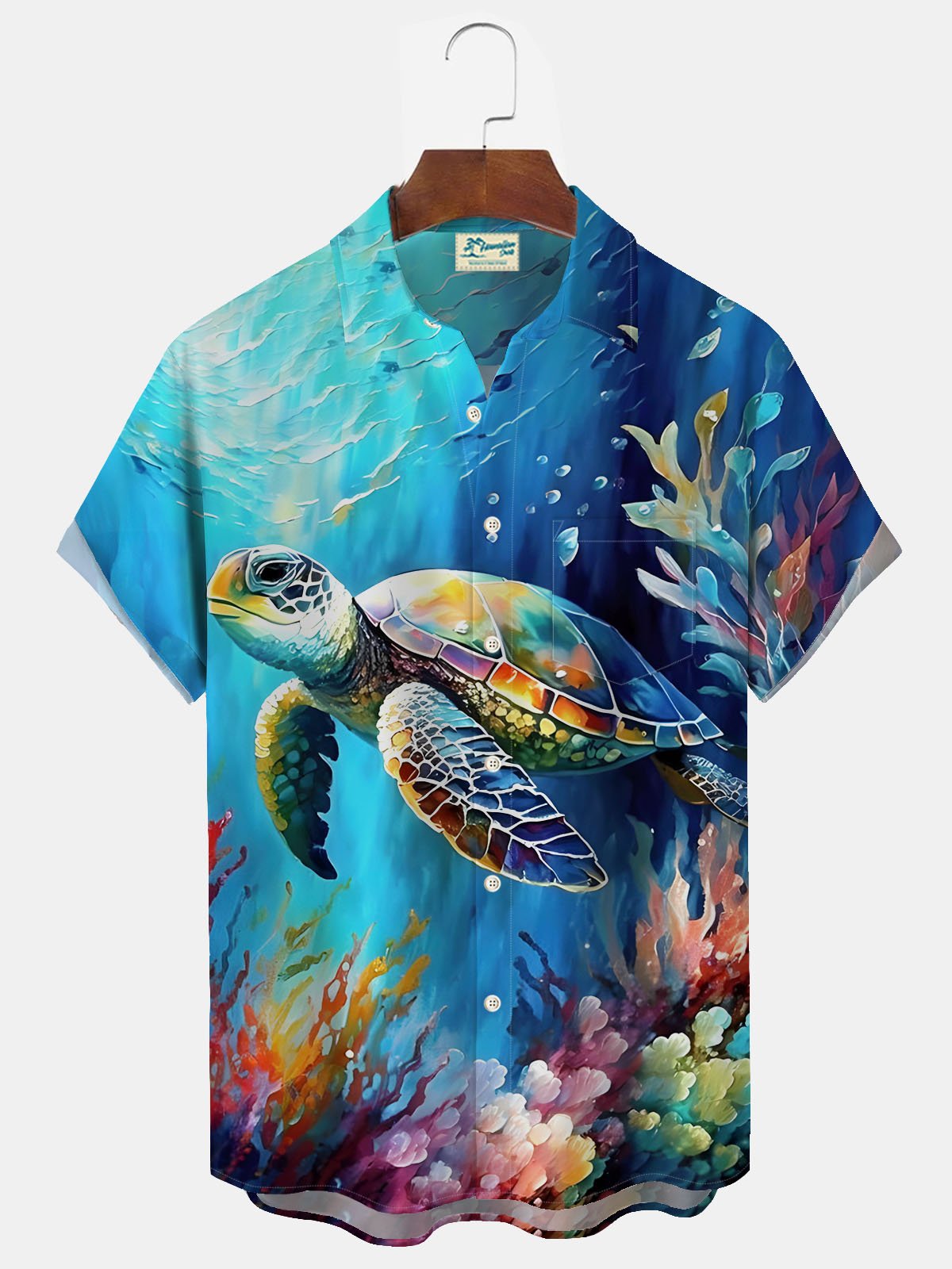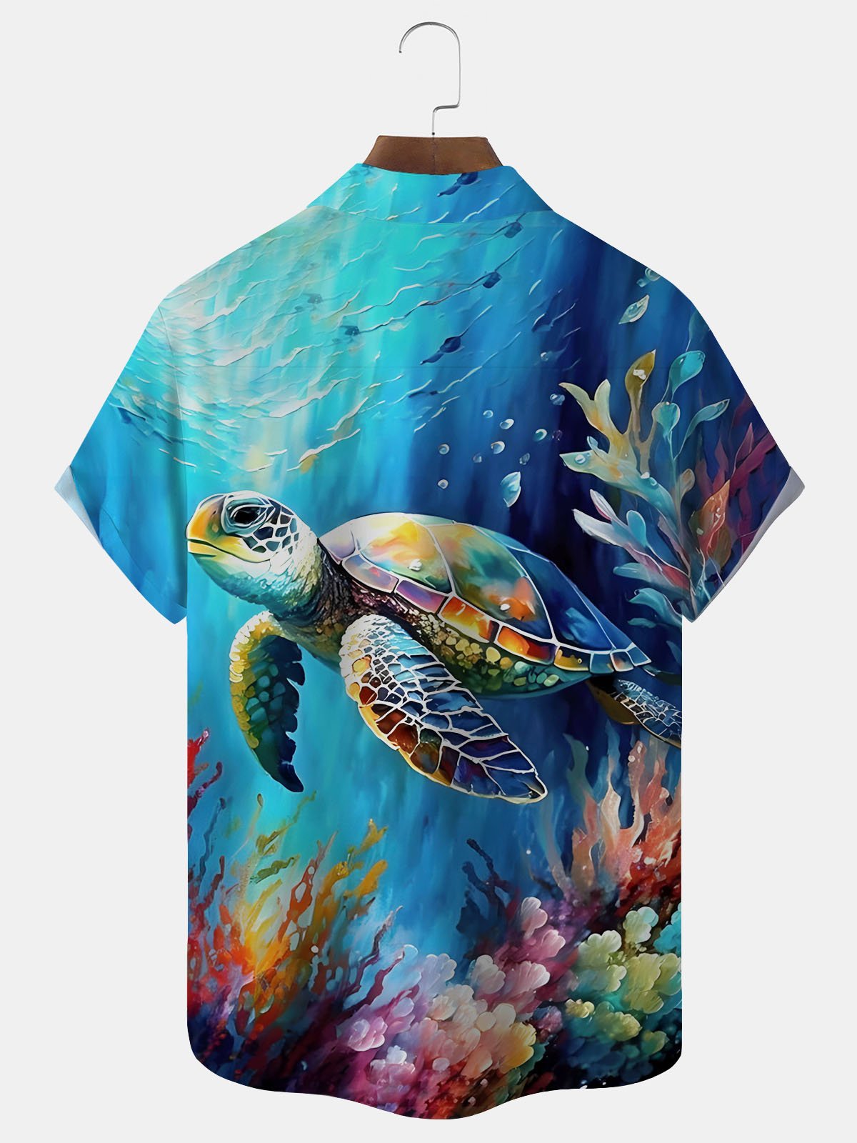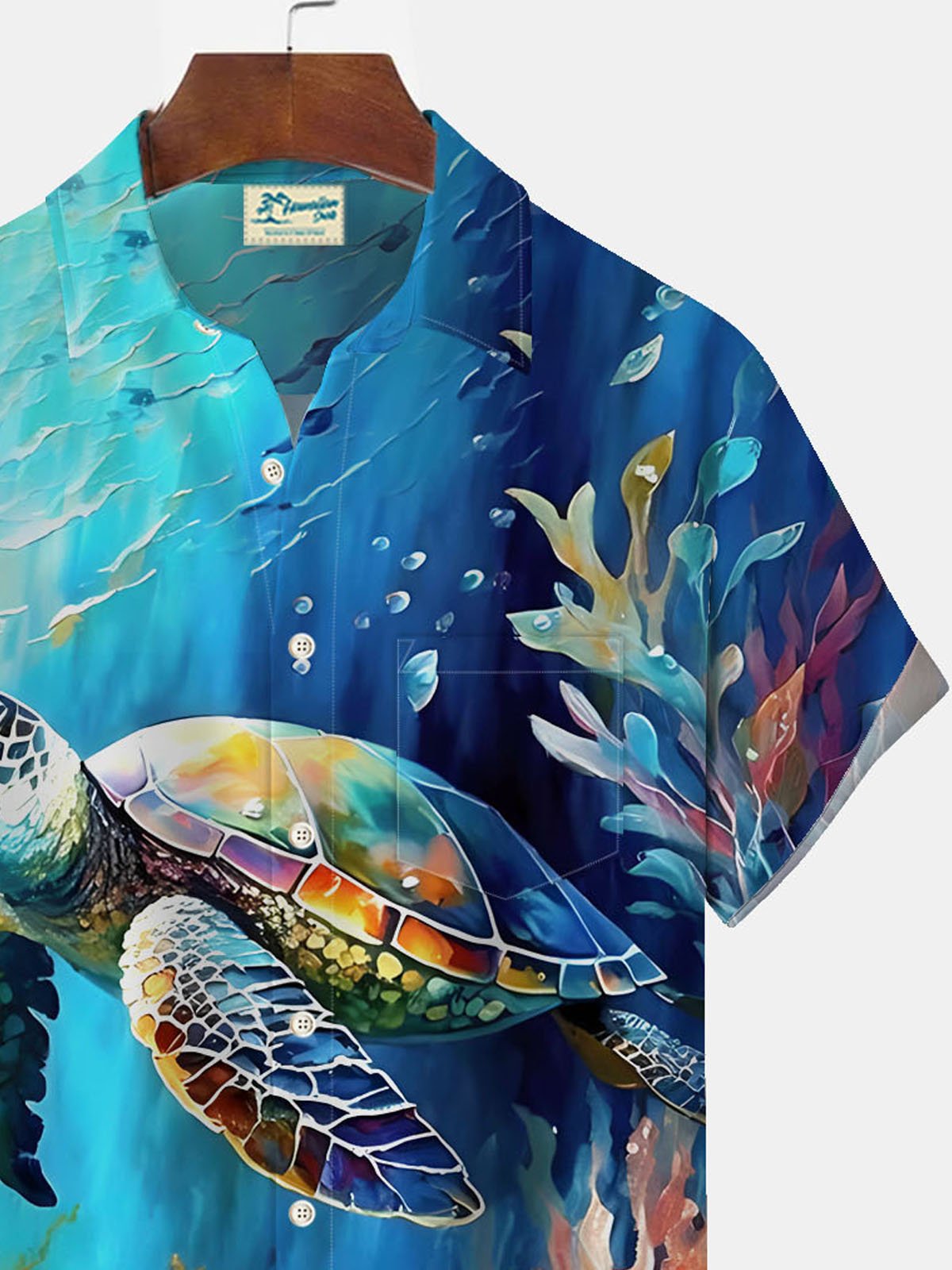 Camisa con bolsillos abotonados para hombre con estampado de tortuga hawaiana Alohadaddy