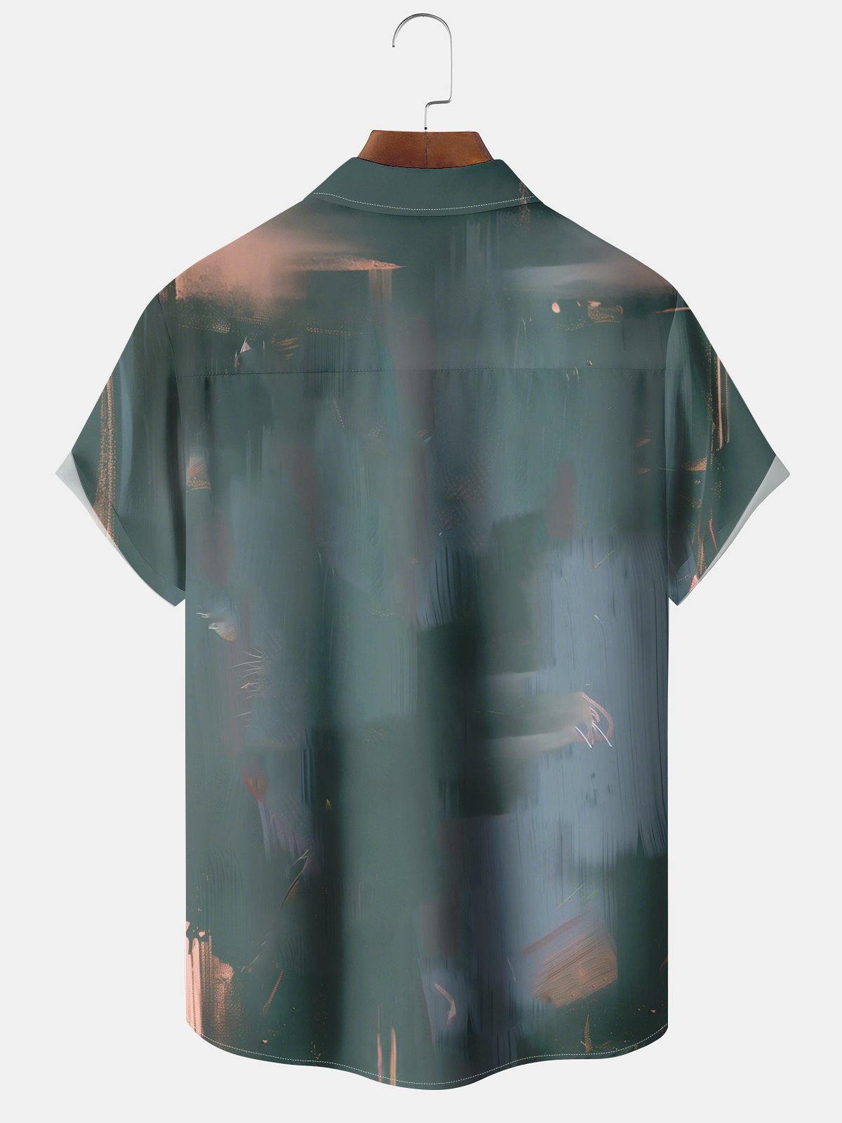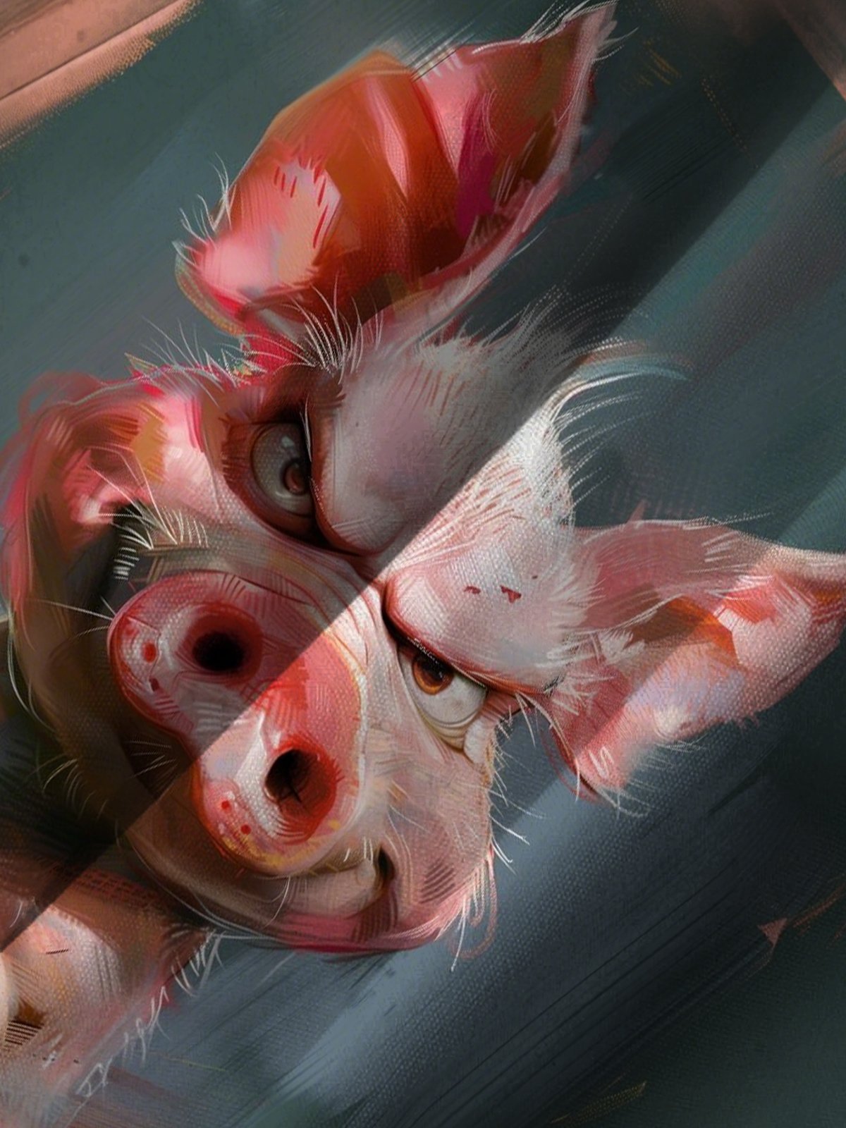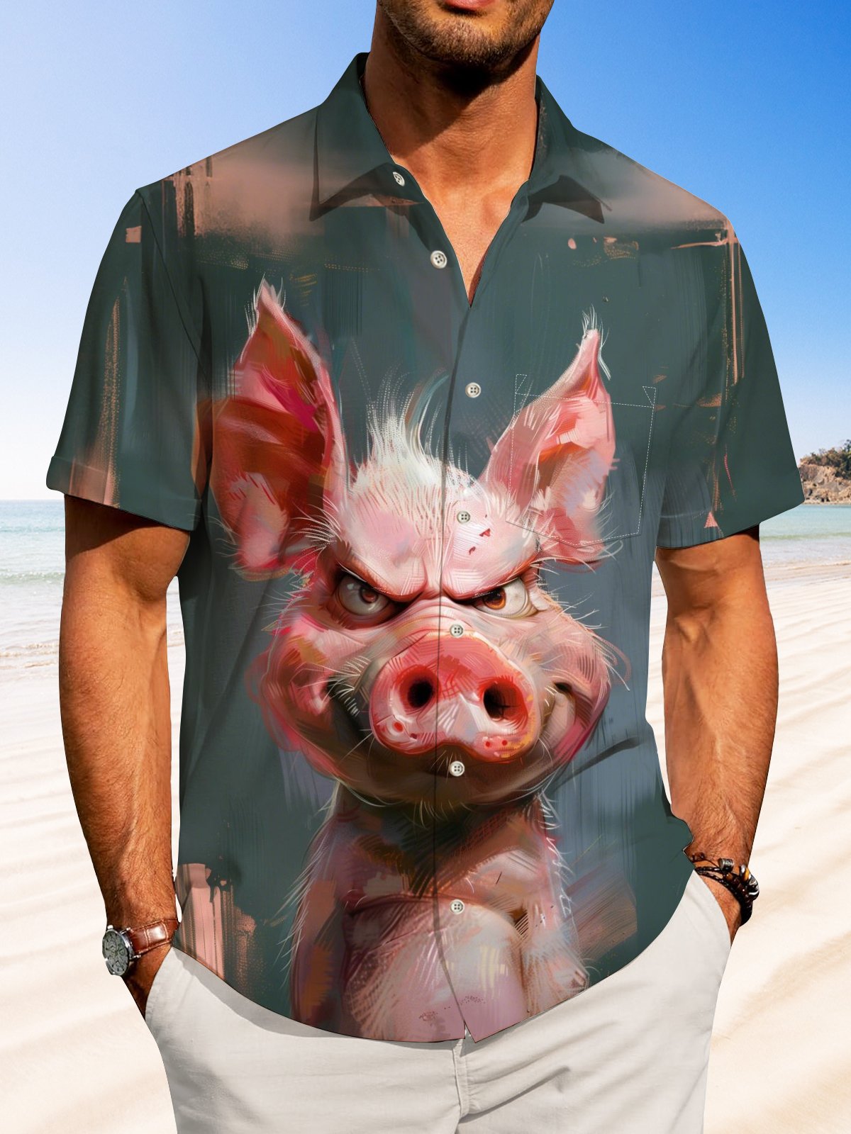 Alohadaddy Hawaiian Casual Oil Painting Angry Pig Painting Art Button Cardigan Pocket Large Size Long Polyester Short Sleeve Shirt