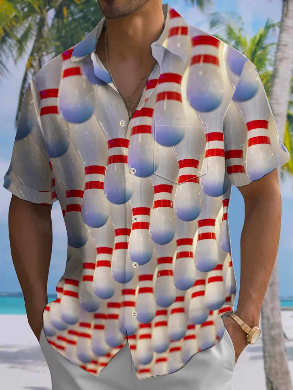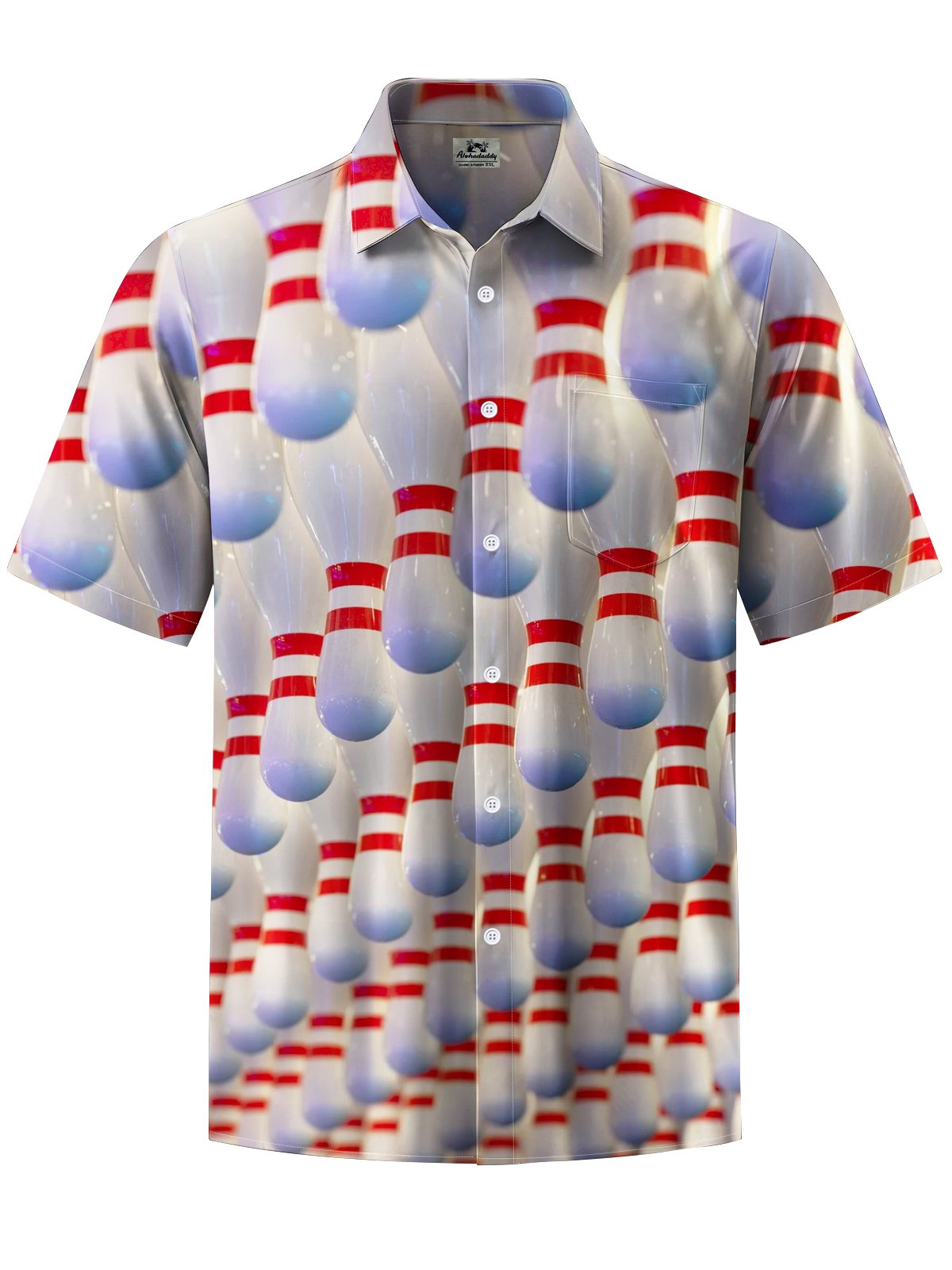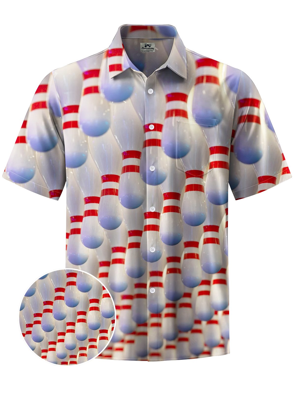 Alohadaddy® Leisure Sports Bowling Print Art Chest Pocket Men's Short Sleeve Shirt Big & Tall