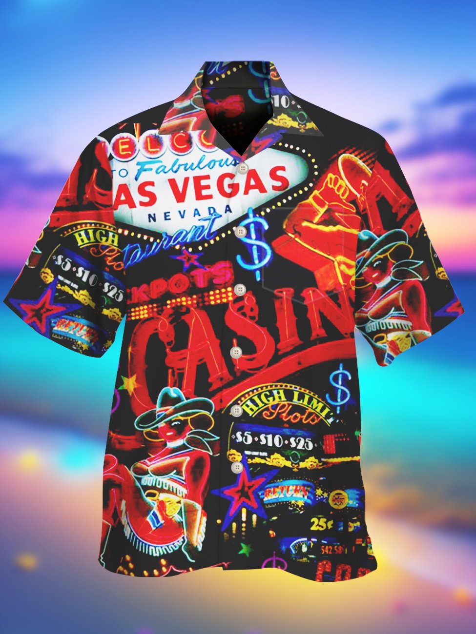 Camisas informales de talla grande con estampado de Las Vegas de Alohadaddy Vinage American
