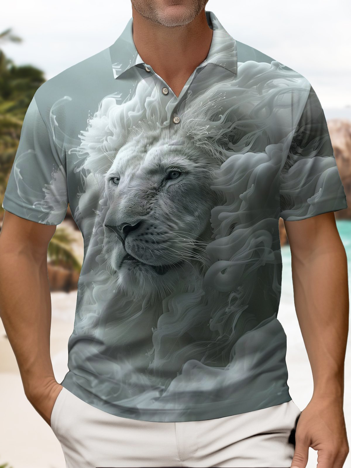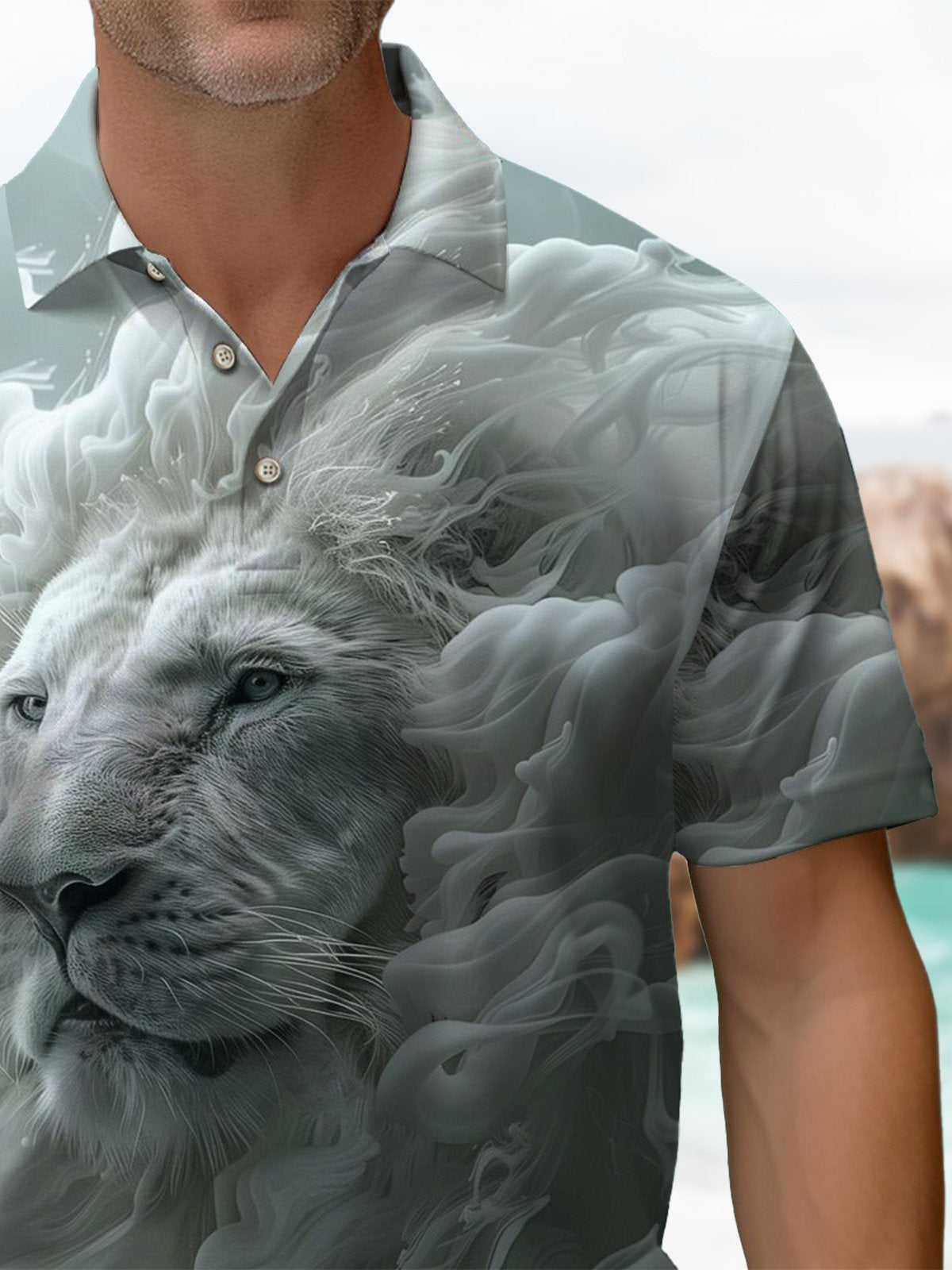 Alohadaddy® Hawaiian Lion Head Art Print Men's Short Sleeve Polo Shirt Big & Tall
