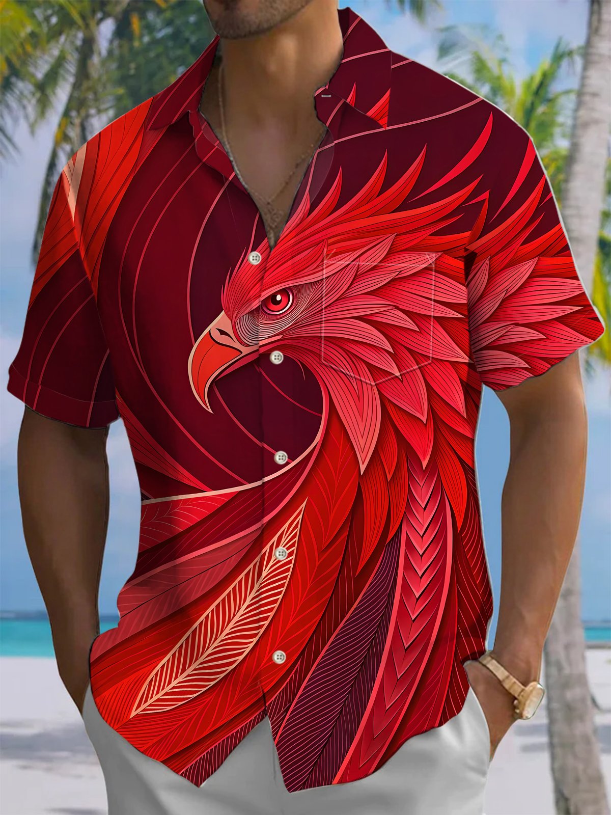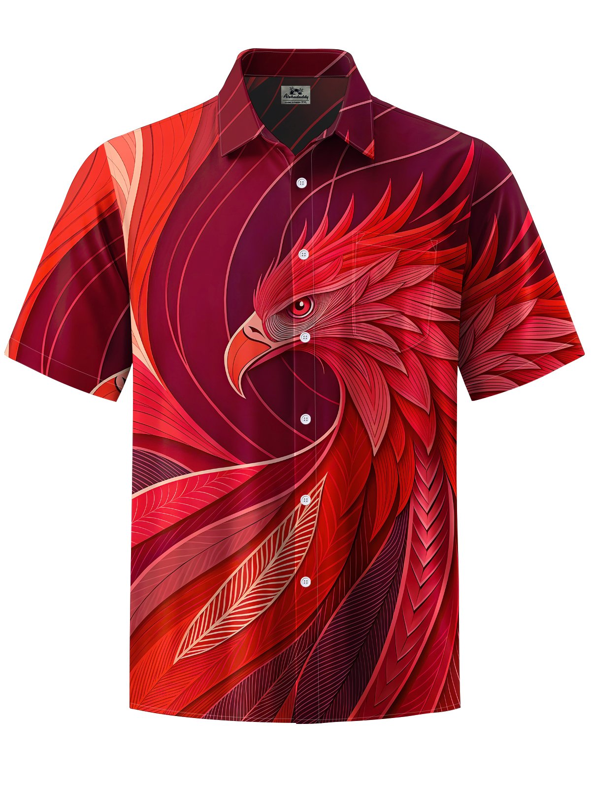 Alohadaddy® Casual Phoenix Art Print Chest Pocket Men's Stretch Short Sleeve Shirt Big & Tall