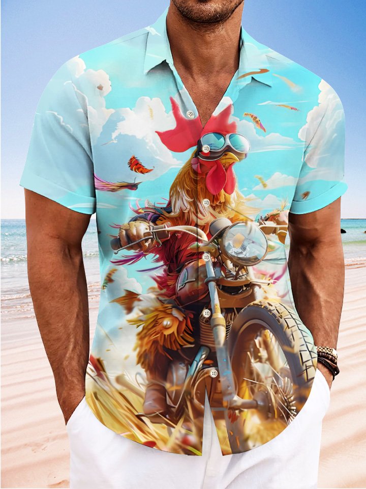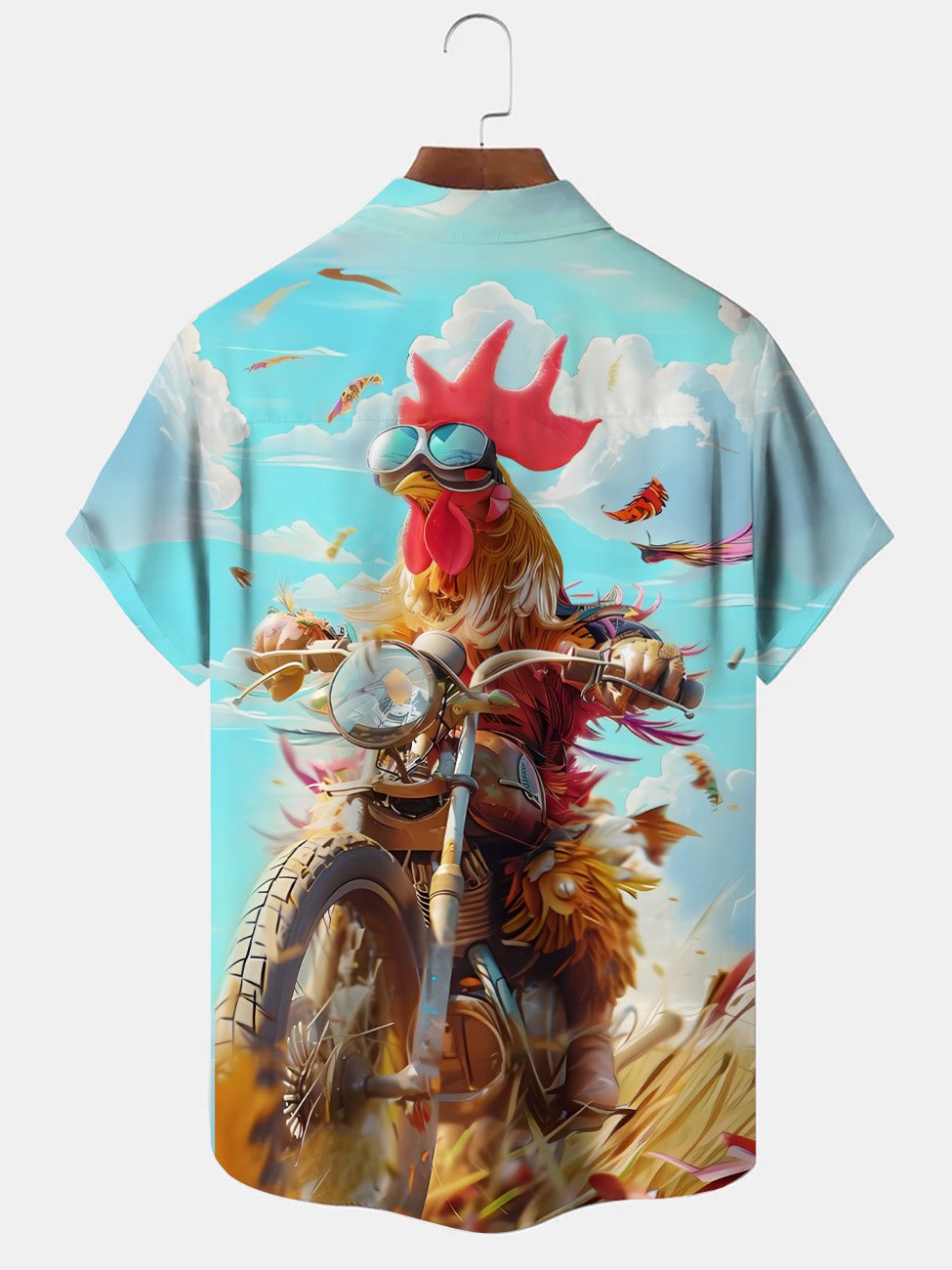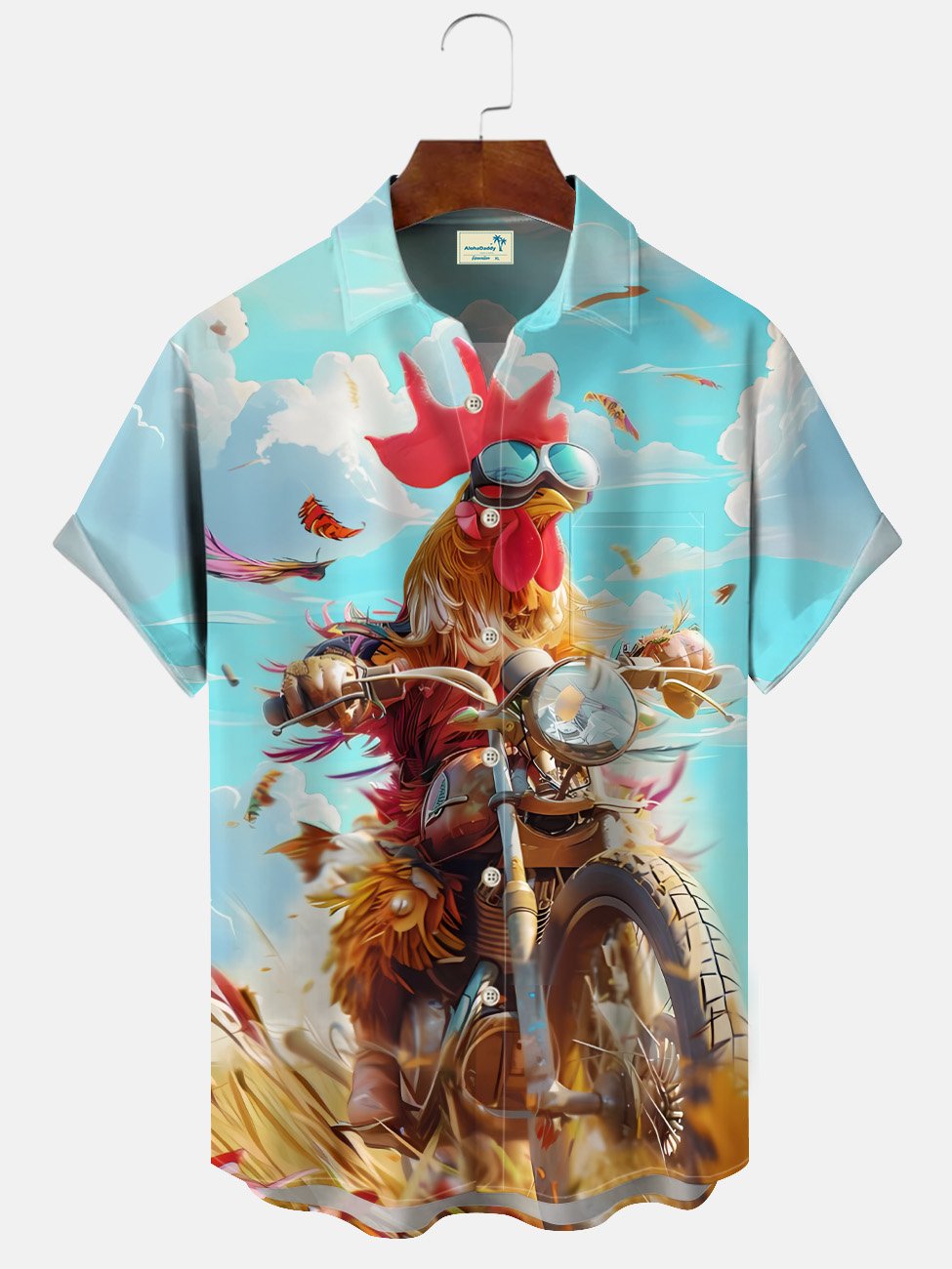 Camisa de manga corta informal con botones y bolsillo para hombre, diseño divertido de gallo y motocicleta, de Alohadaddy