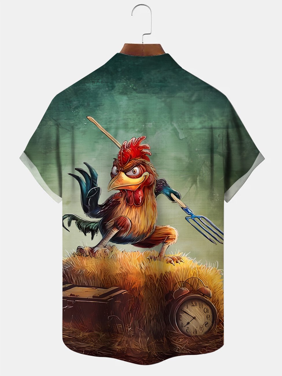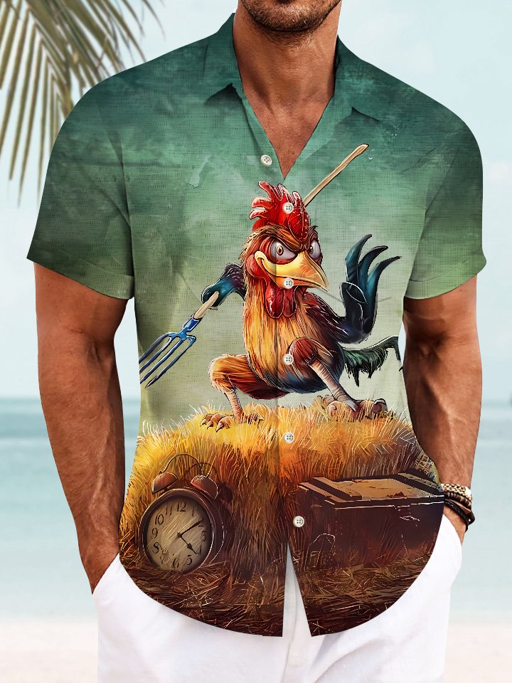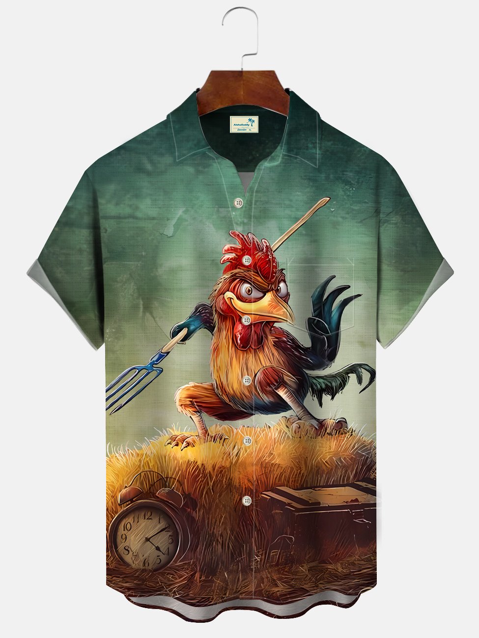 Alohadaddy Camisa de manga corta informal con bolsillos y botones para hombre, diseño divertido de gallo y arte de kung fu, para vacaciones, de verano