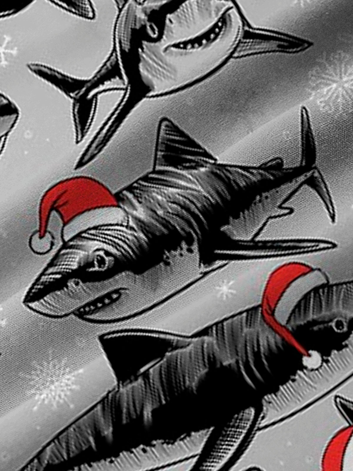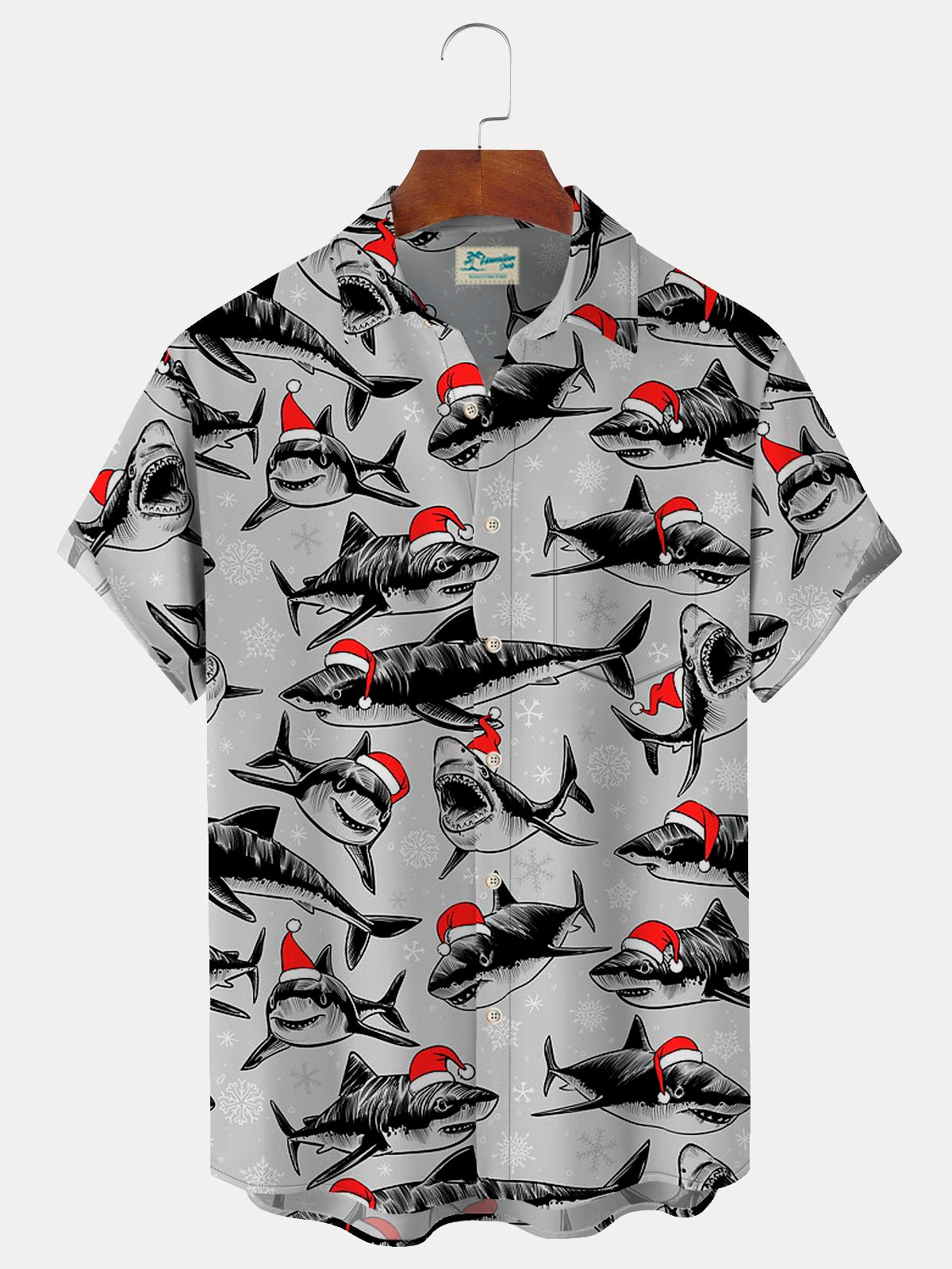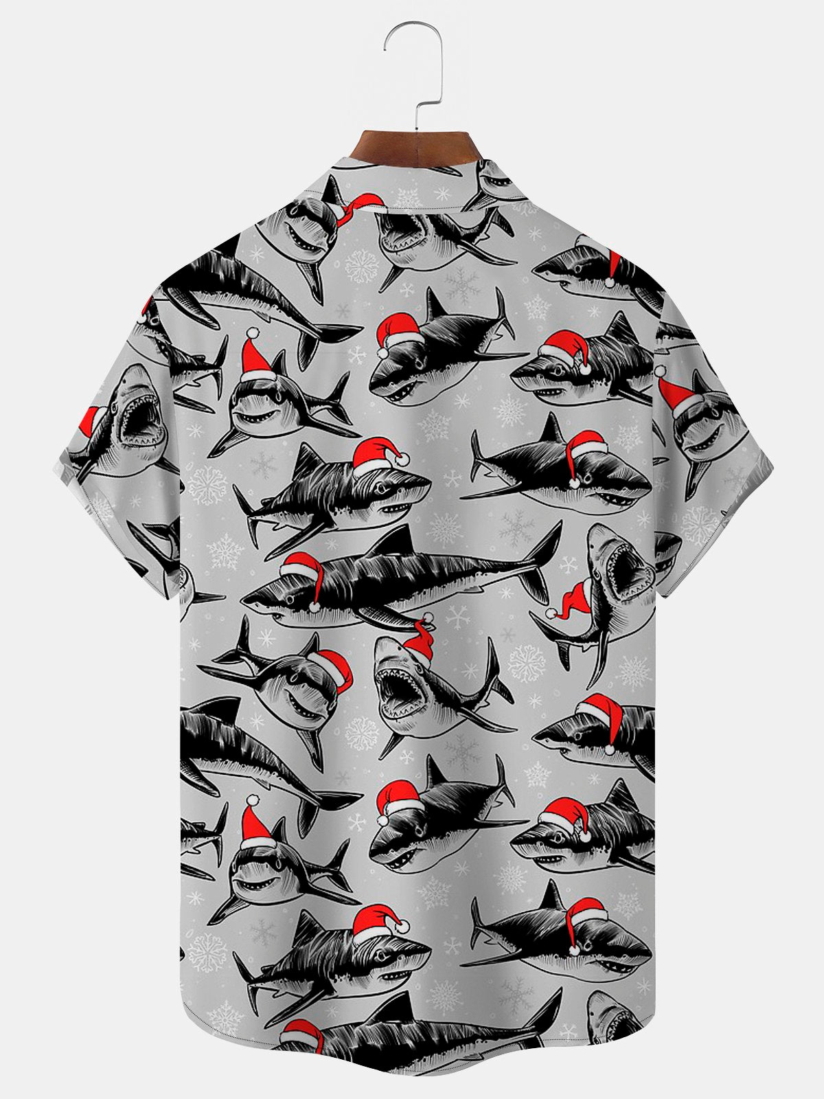 Camisa con bolsillo abotonado para hombre con estampado navideño de tiburones de Alohadaddy