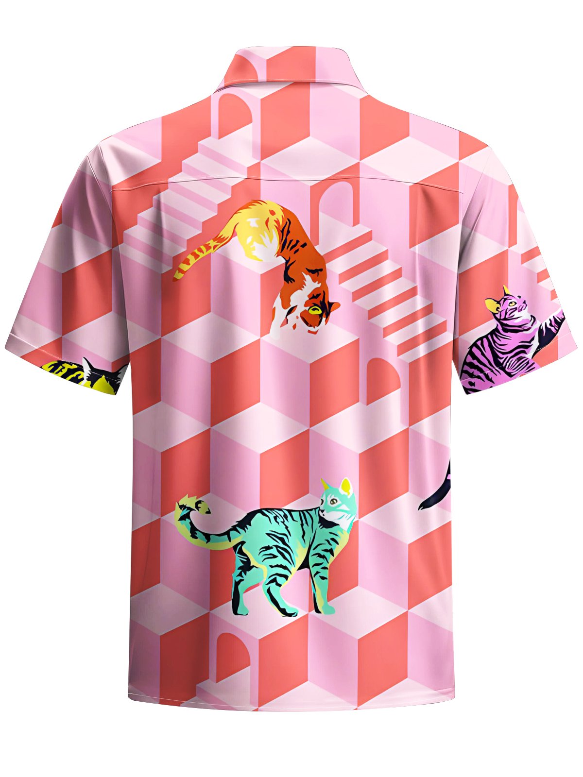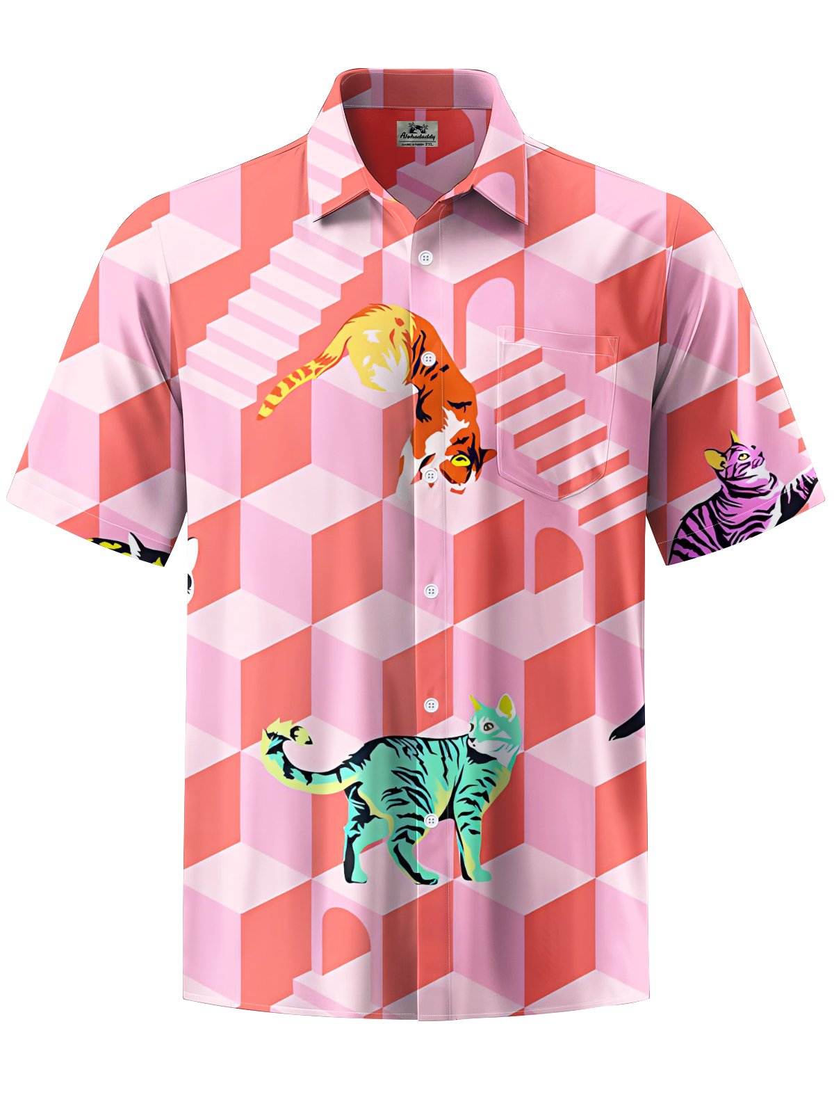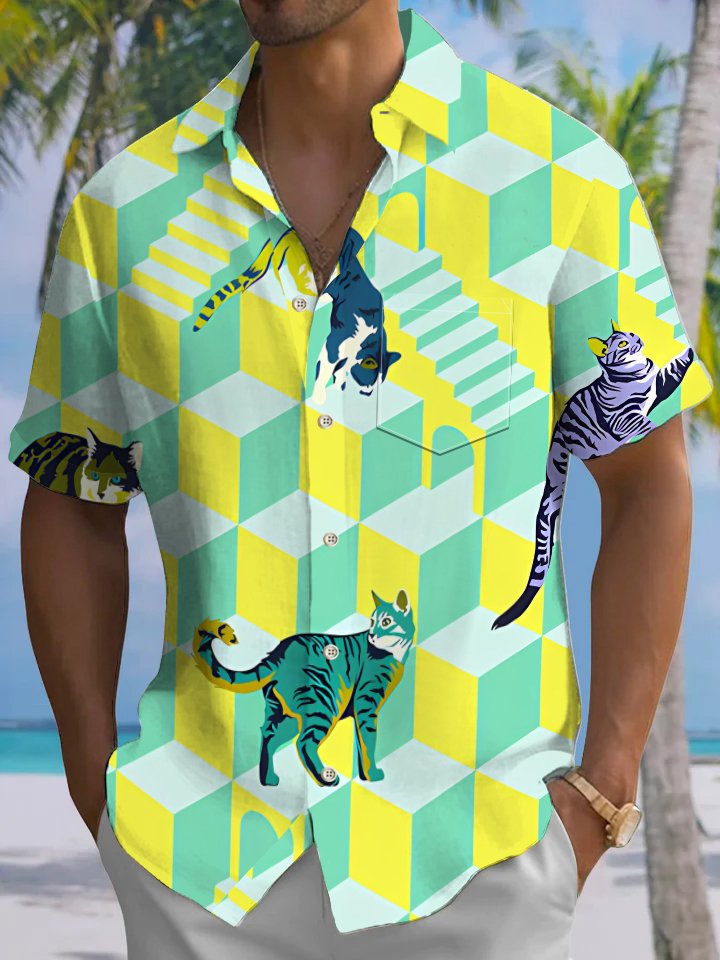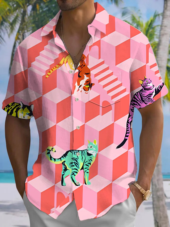 Alohadaddy® Casual Geometric Cat Art Print Moisture Wicking Men's Short Sleeve Shirt Big & Tall