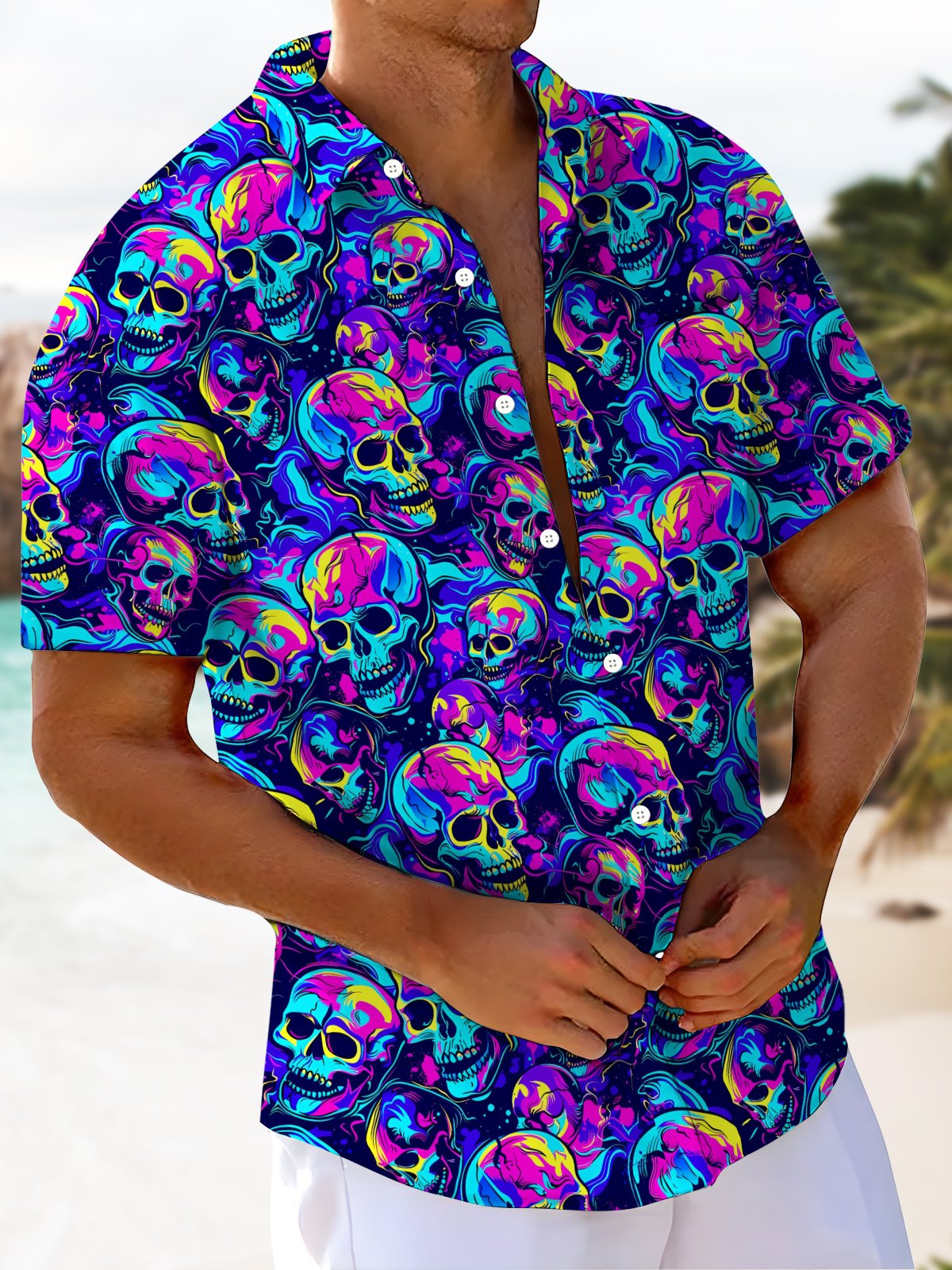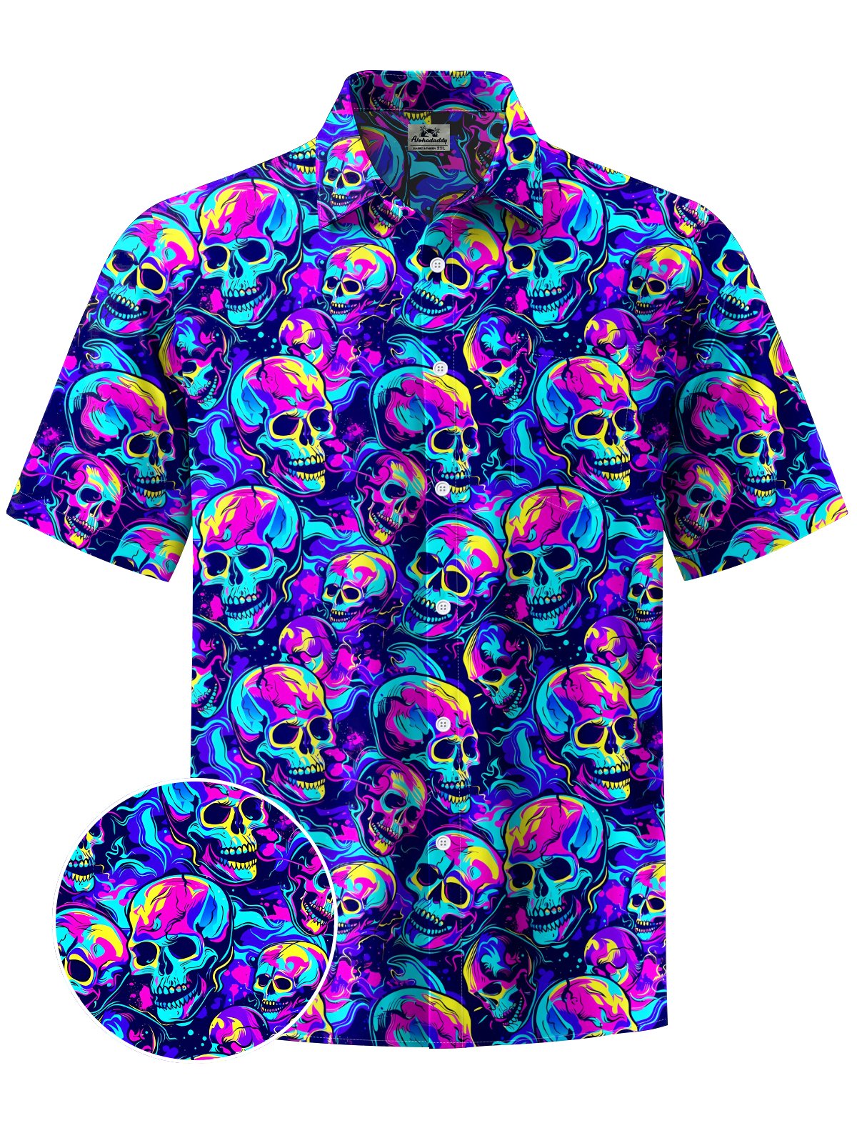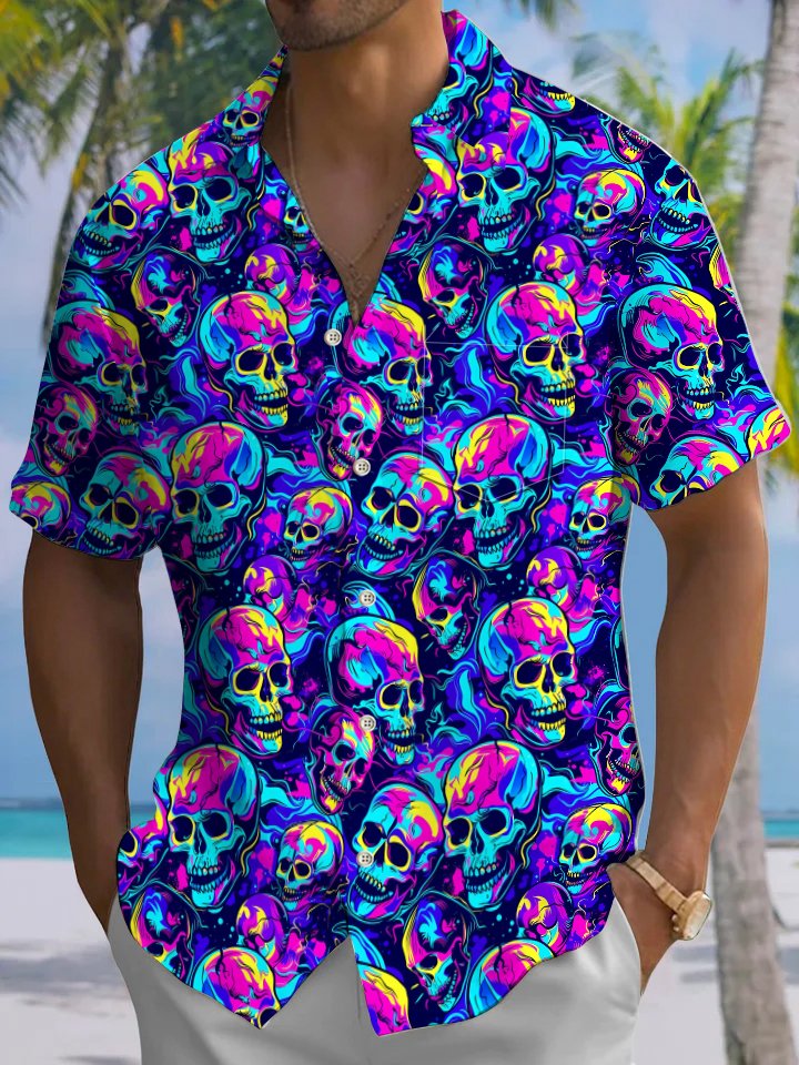 Alohadaddy® Hawaiian Skull Art Print Moisture Wicking Men's Short Sleeve Shirt Big & Tall