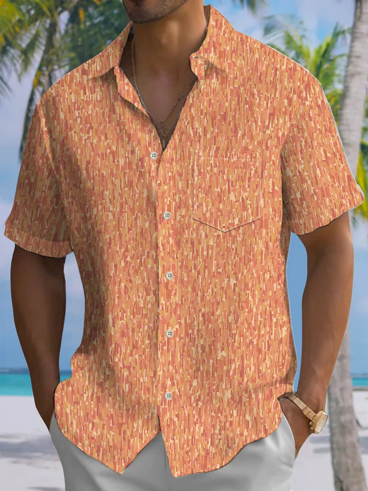 Alohadaddy® Casual Stripe Art Print Chest Pocket Men's Short Sleeve Shirt Big & Tall