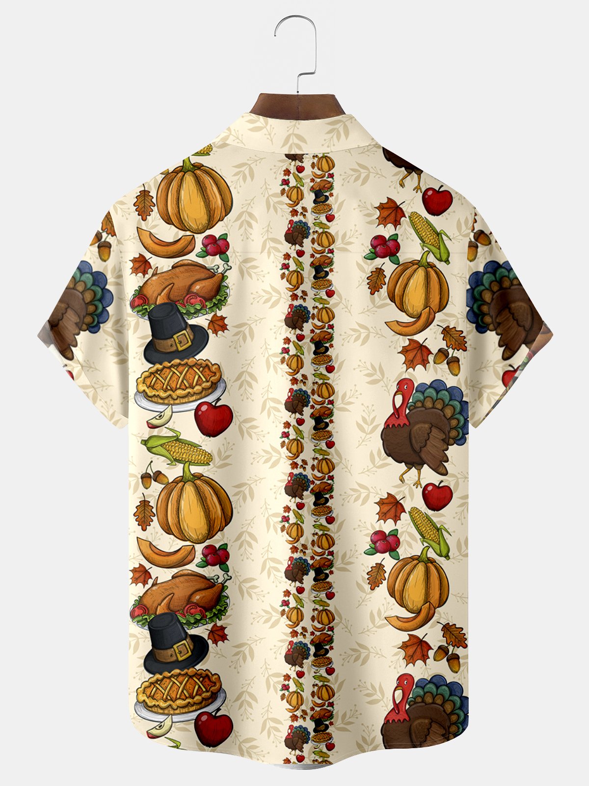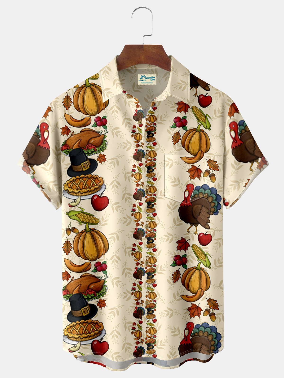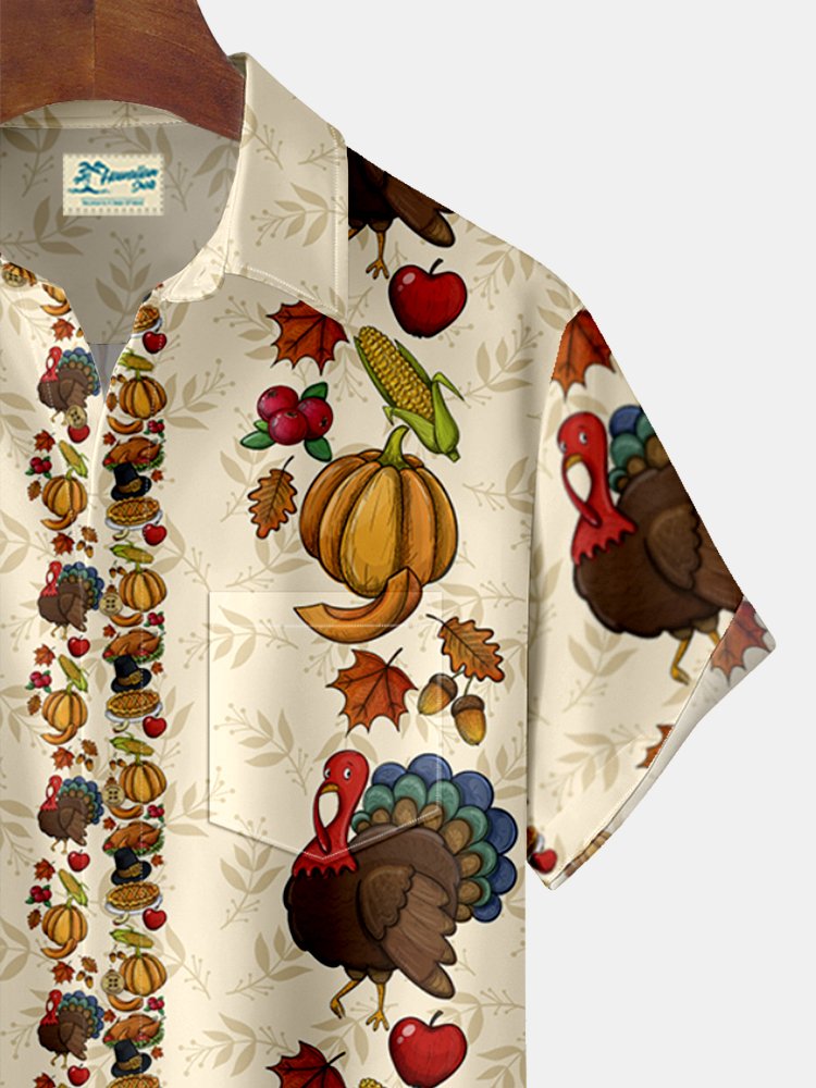 Camisa hawaiana extragrande con bolsillos para hombre, con estampado de pavo y calabaza para Acción de Gracias, Alohadaddy