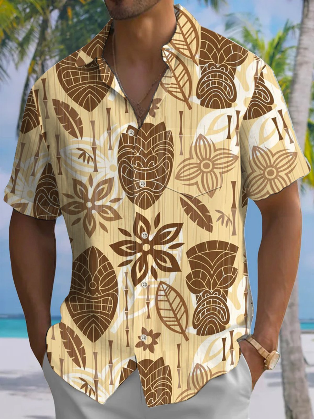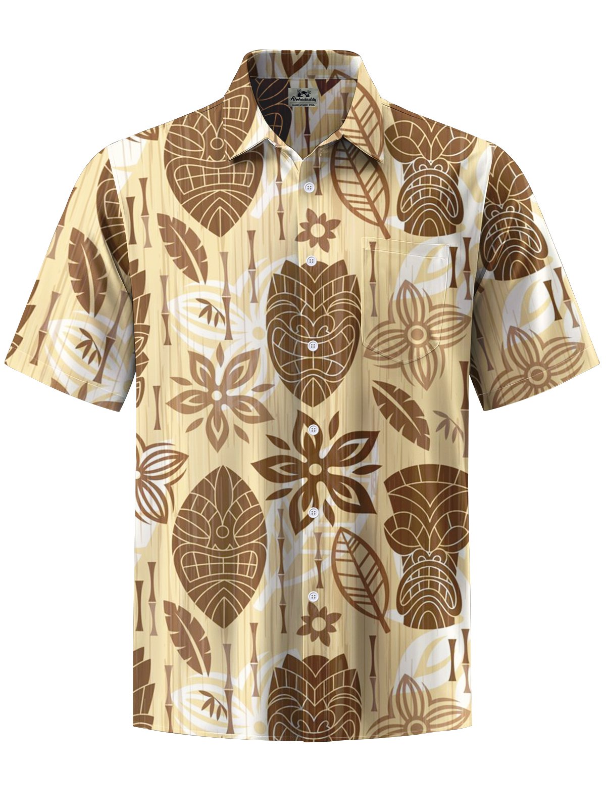 Alohadaddy® Casual Tiki Art Print Pocket Stretch Men's Short Sleeve Shirt Big & Tall