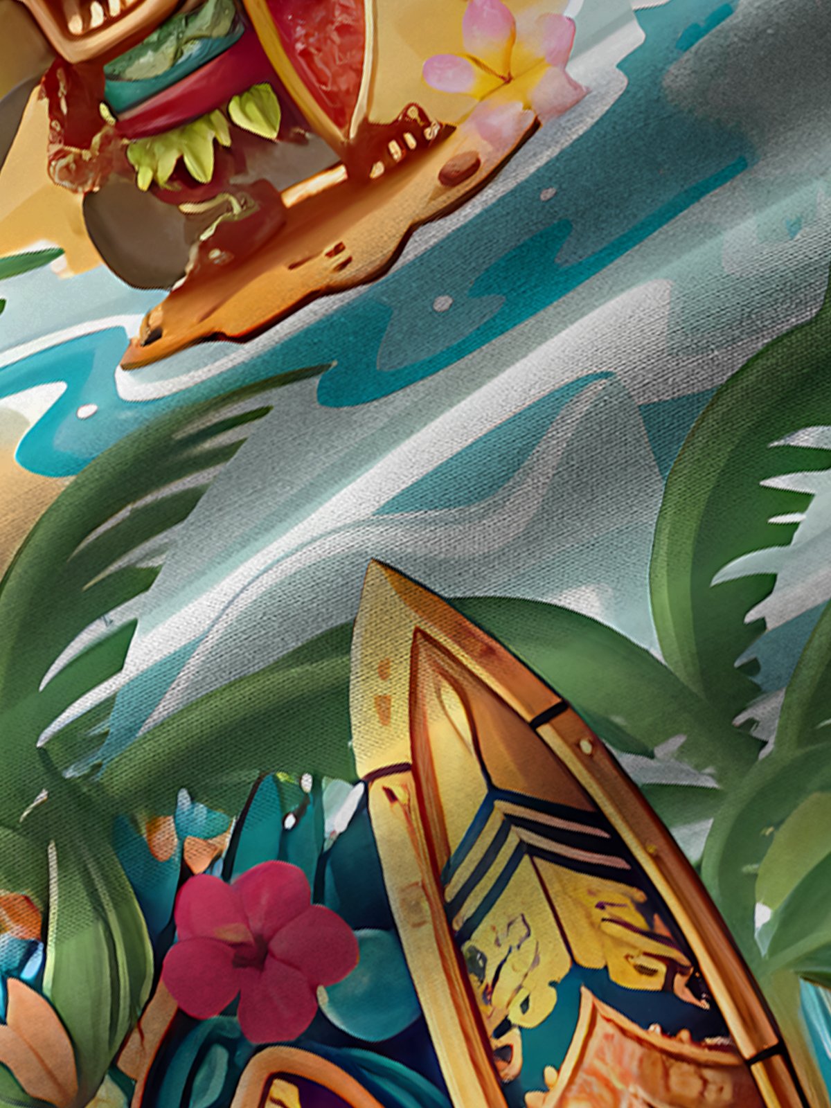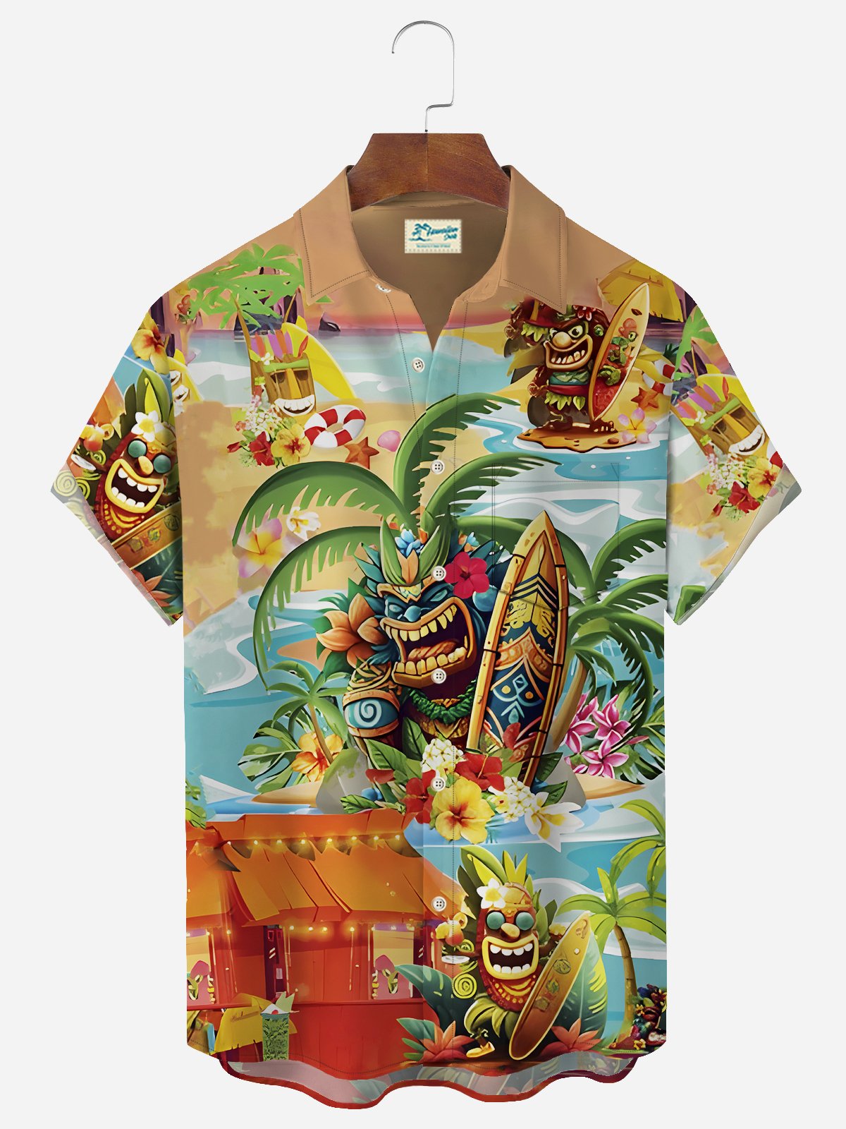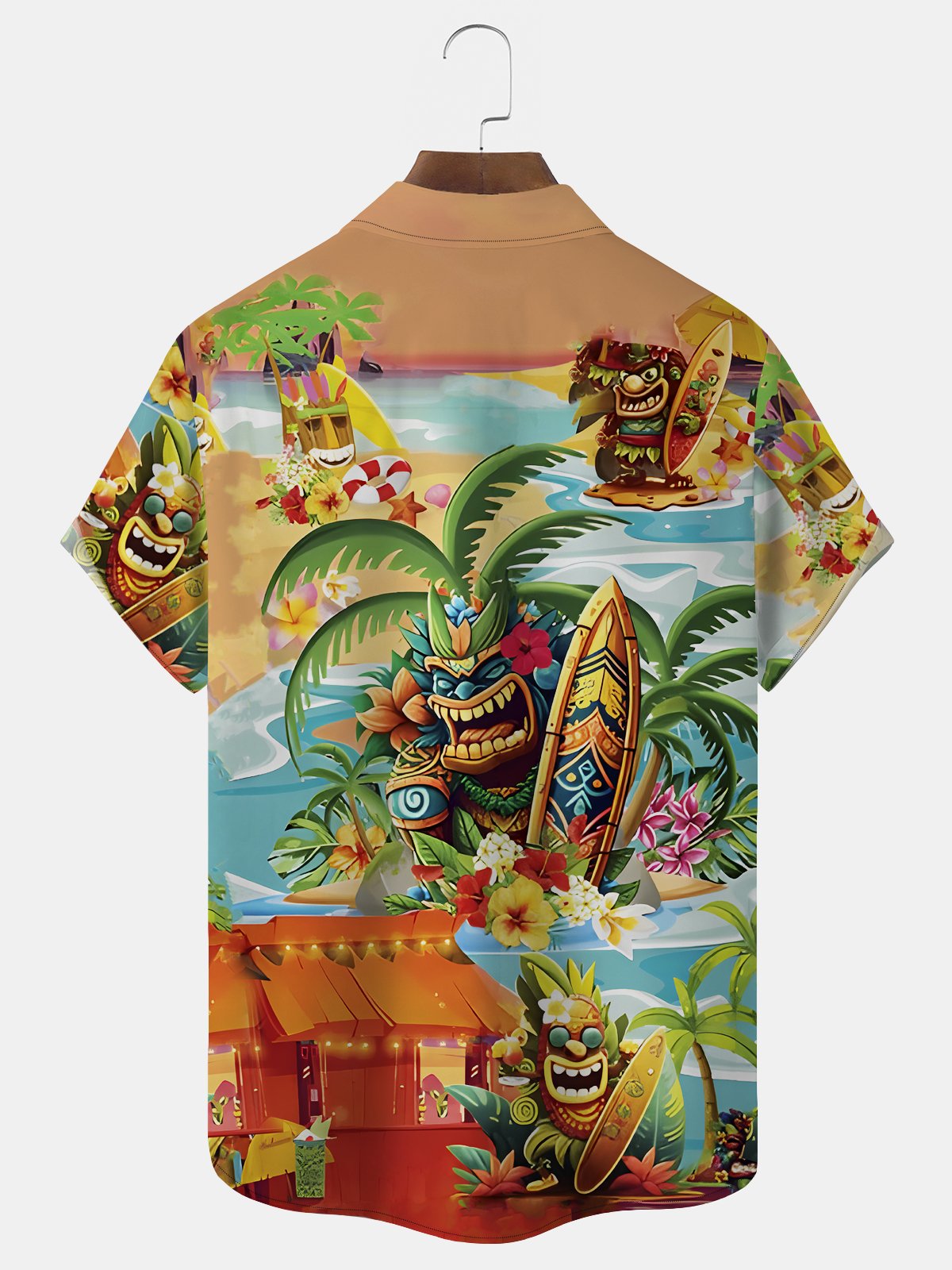 Camisa hawaiana con bolsillos abotonados y estampado de árboles de coco Tiki de Alohadaddy para hombre