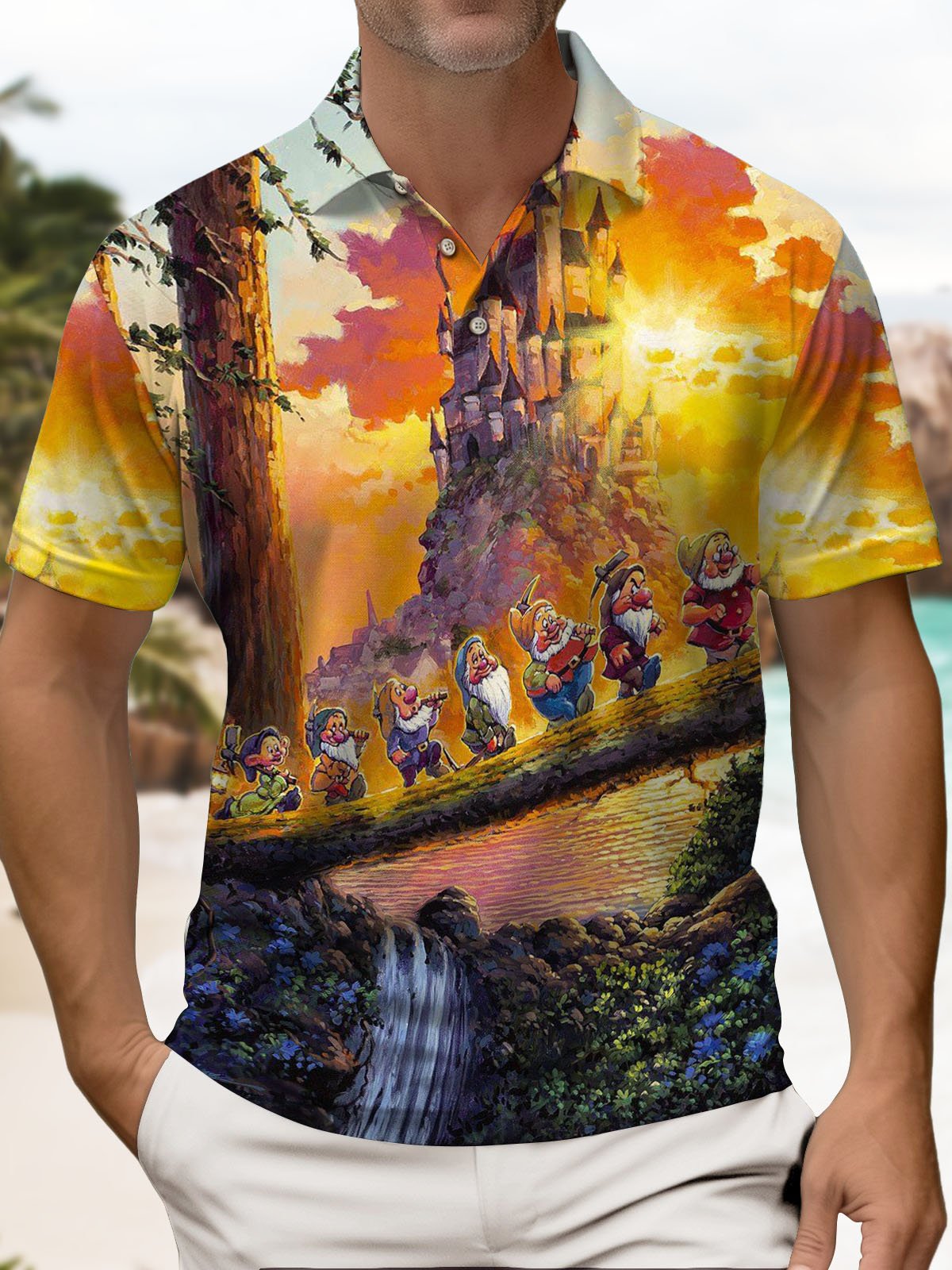 Alohadaddy® Casual Cartoon Dwarf Print Art Men's Short Sleeve Polo Big & Tall