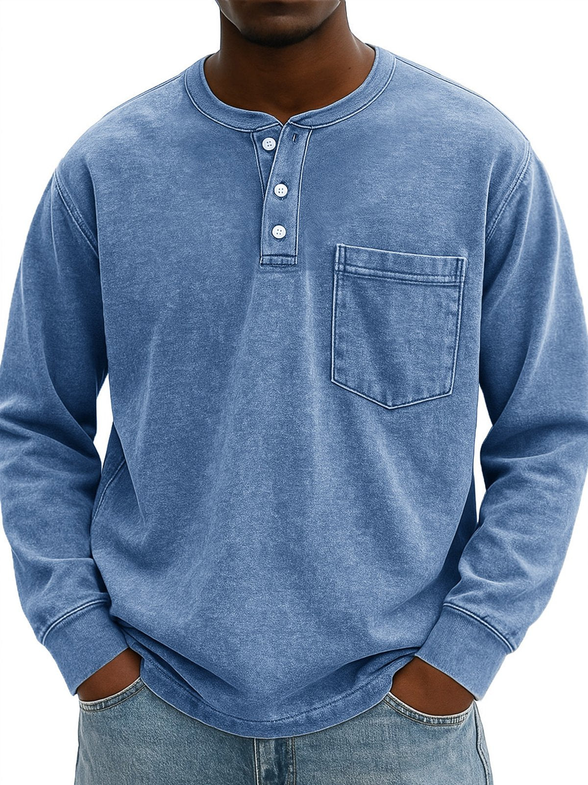 Alohadaddy® Half Zipper Men's Spring and Autumn 3D Digital Solid Color Printed Three-Button Imitation Cotton Long Sleeve Top