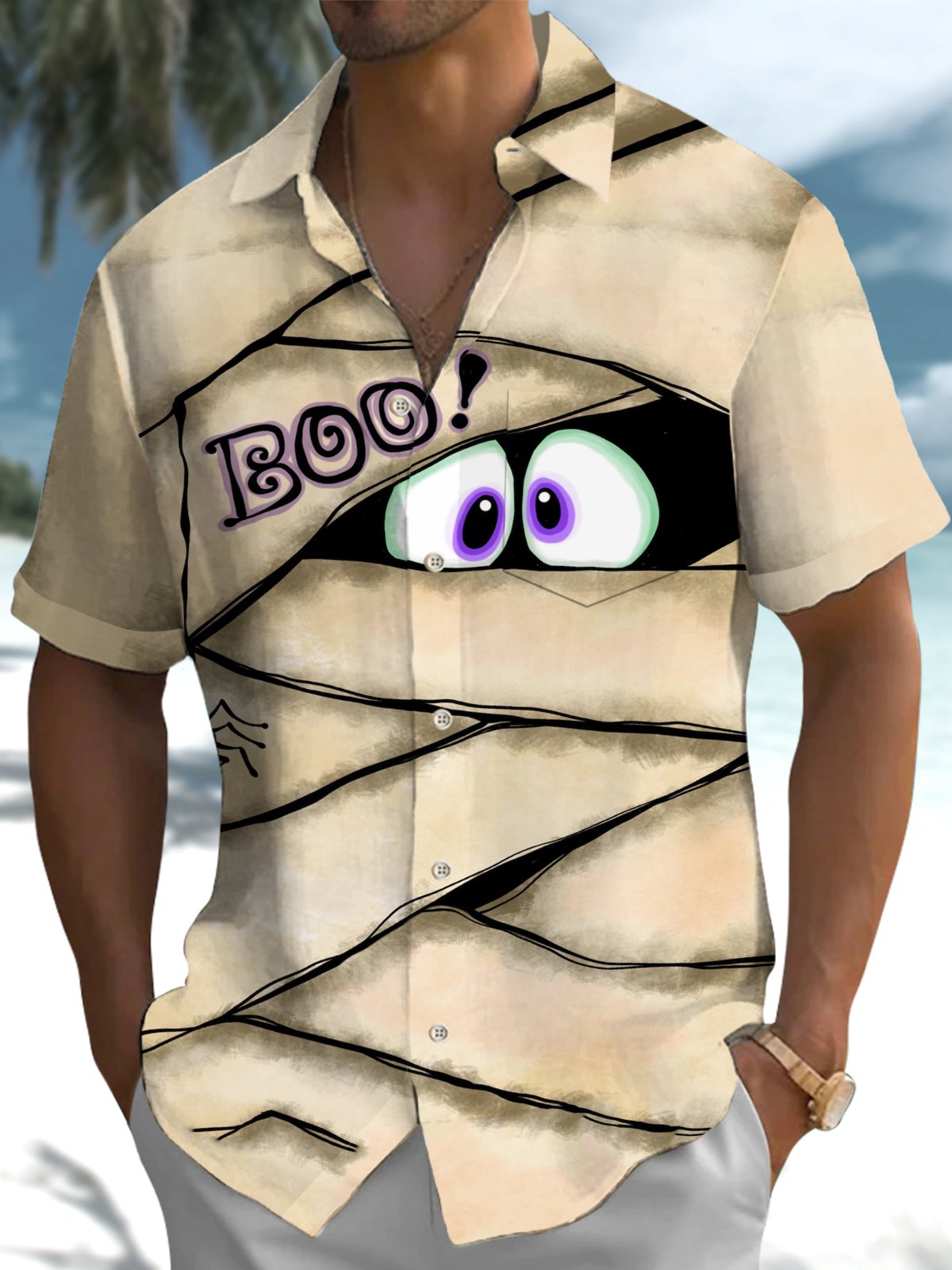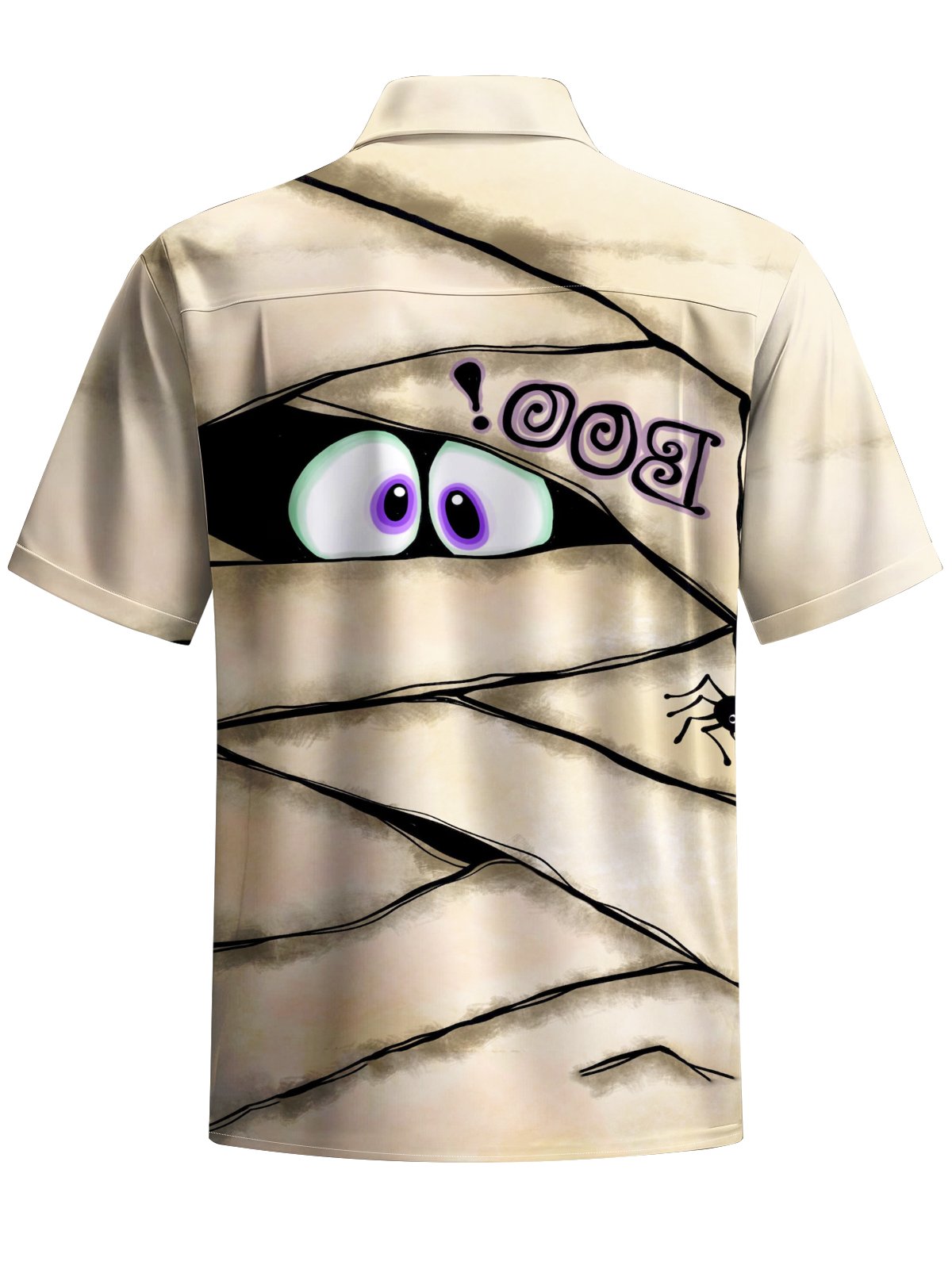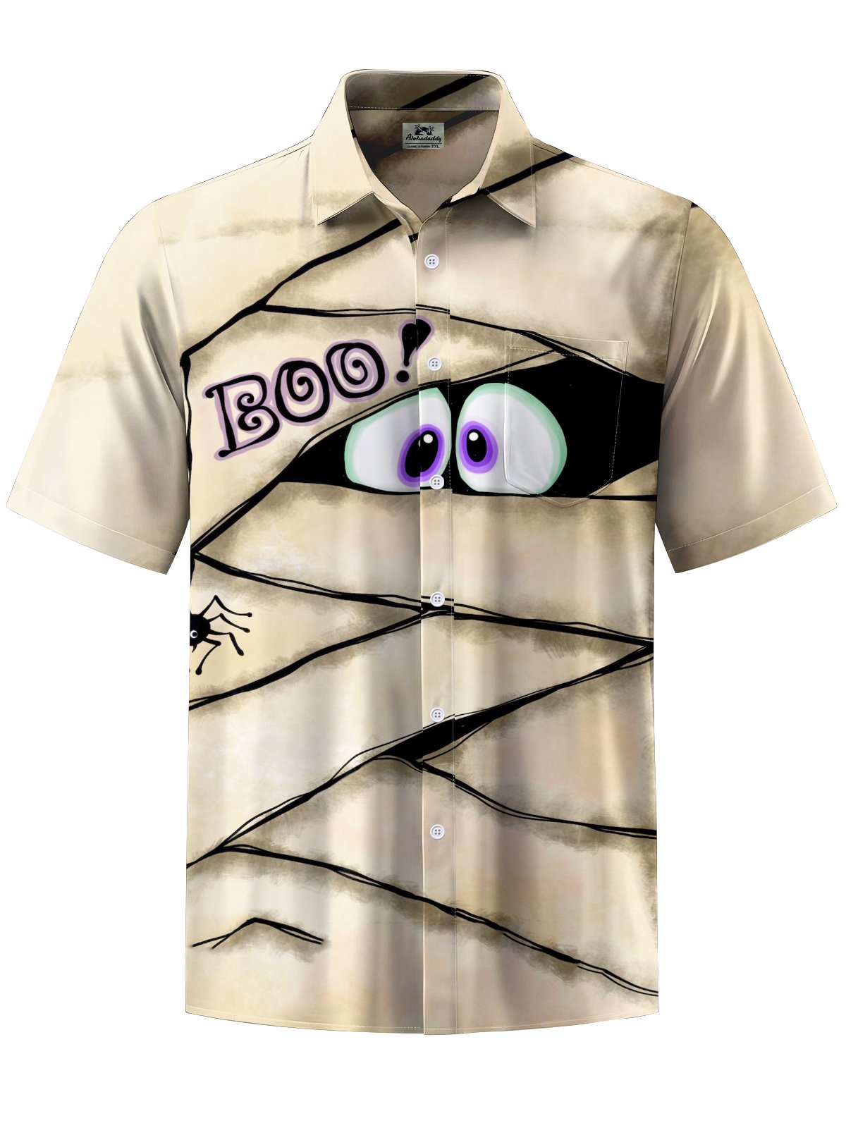 Alohadaddy® Halloween Bandage Printed Art Stretch Pocket Men's Short Sleeve Shirt Big & Tall