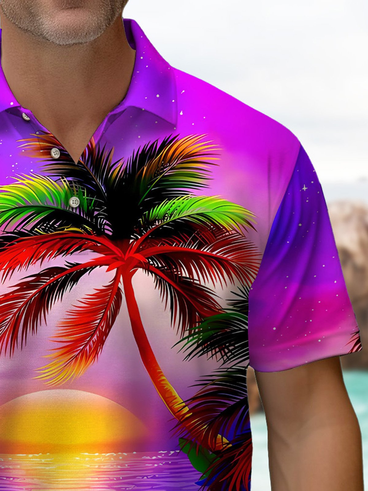 Alohadaddy® Hawaii Sunset Beach Palm Trees Print Art Men's Short Sleeve Polo Big & Tall