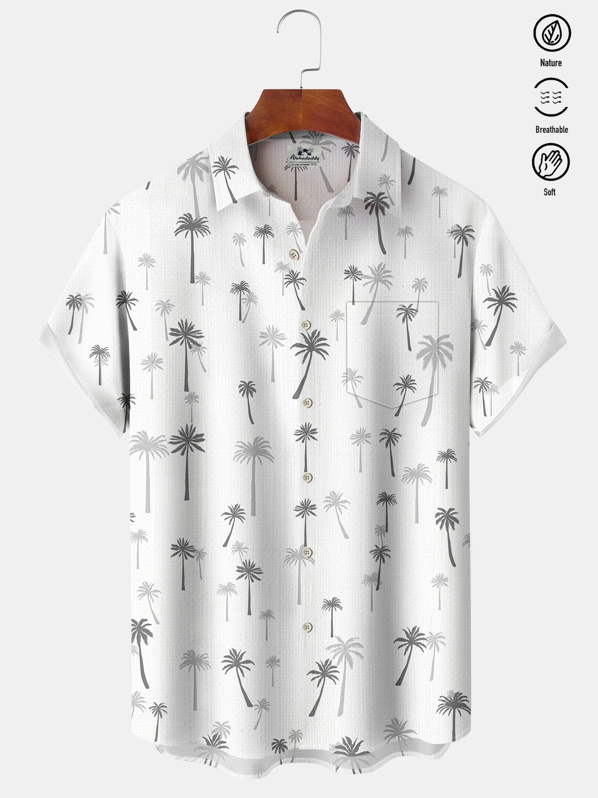 Alohadaddy Casual Collection Palm Tree Button Cardigan Pockets Fresh Stretch Polyester Short Sleeve Shirt