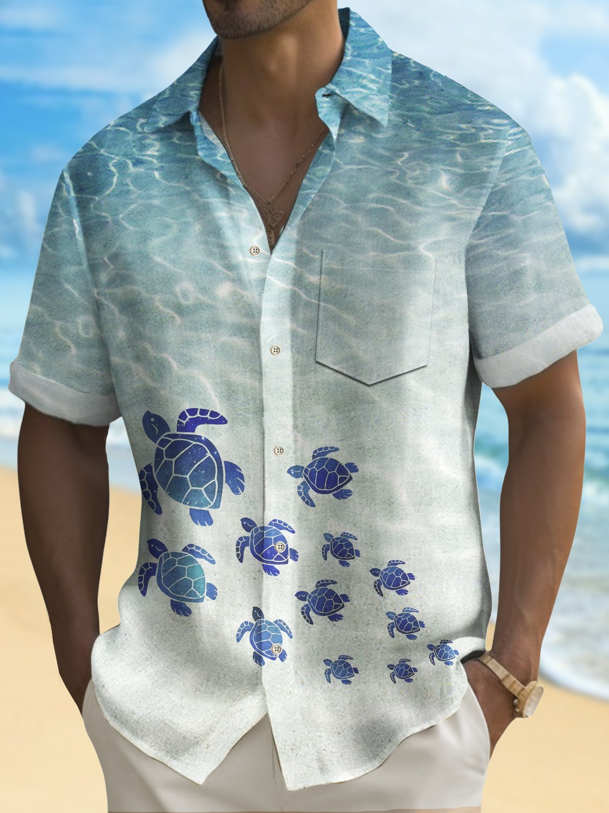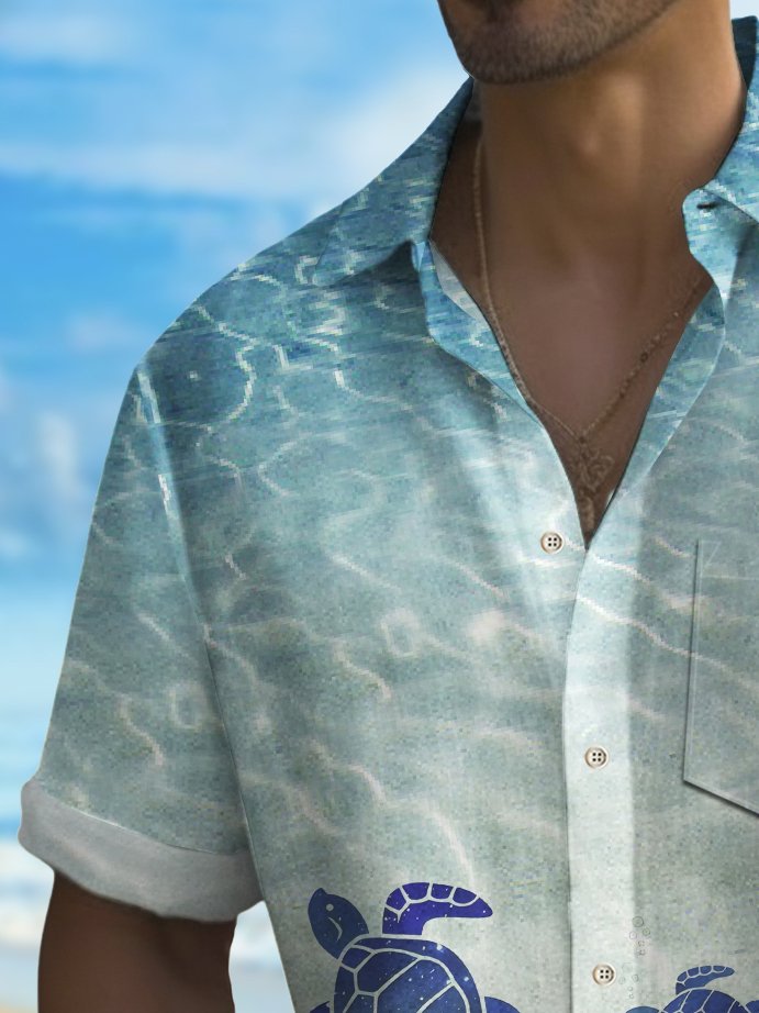Camisa hawaiana de secado rápido con estampado de tortuga para hombre, para vacaciones en la playa, para acampar, talla grande