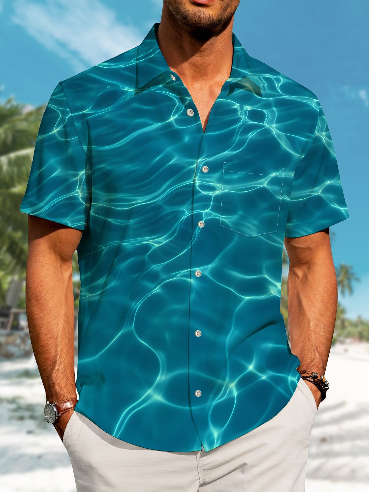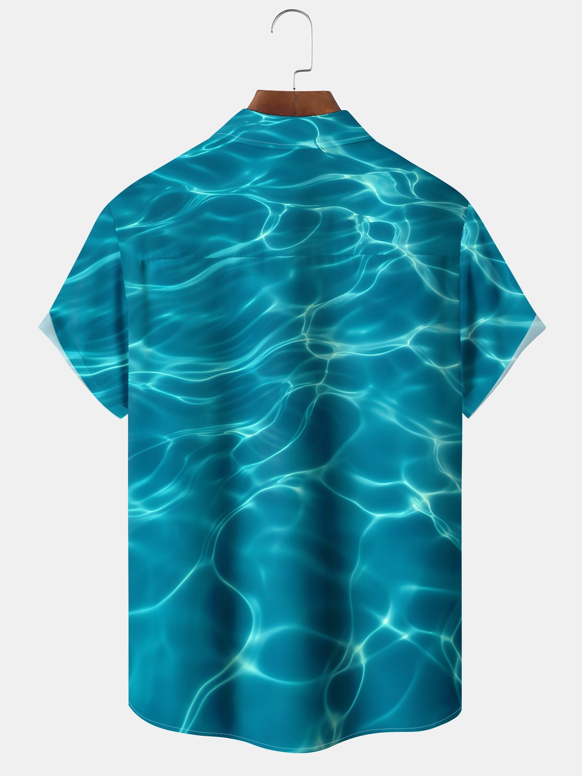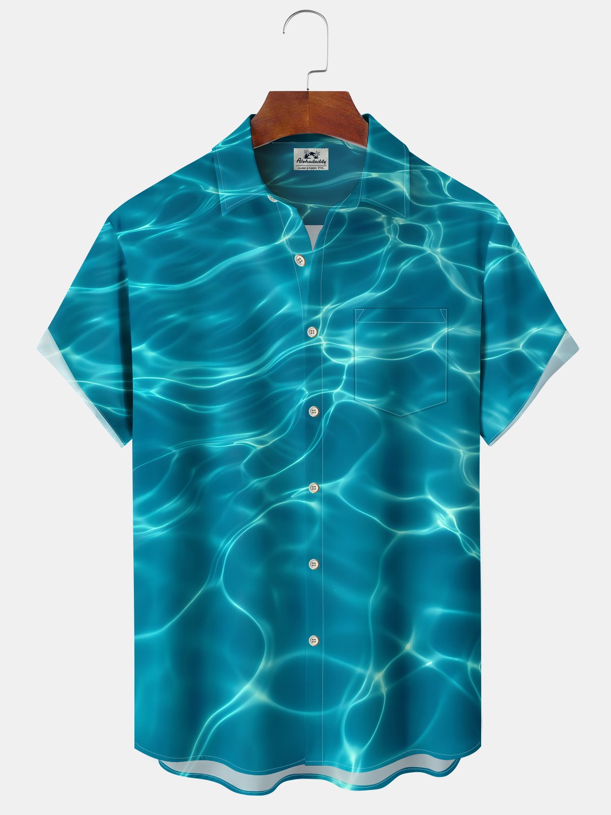 Alohadaddy Hawaiian Sea Water Print Art Pockets Buttons Stretch Large Size Shirt