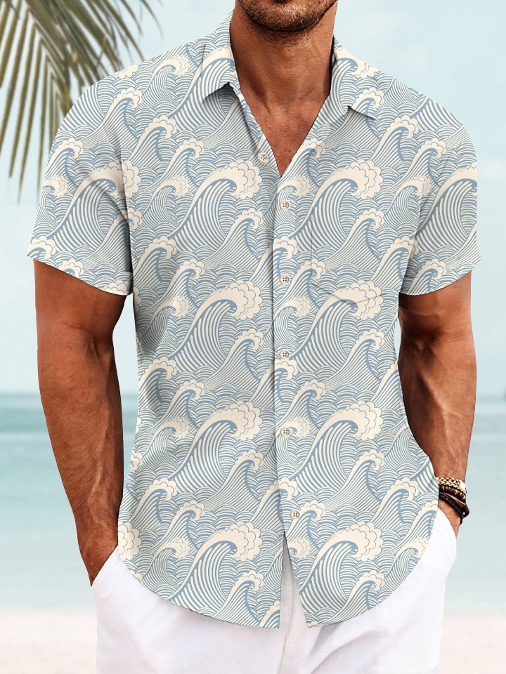 Camisa informal con bolsillos y botones para hombre Summer Wave de Alohadaddy
