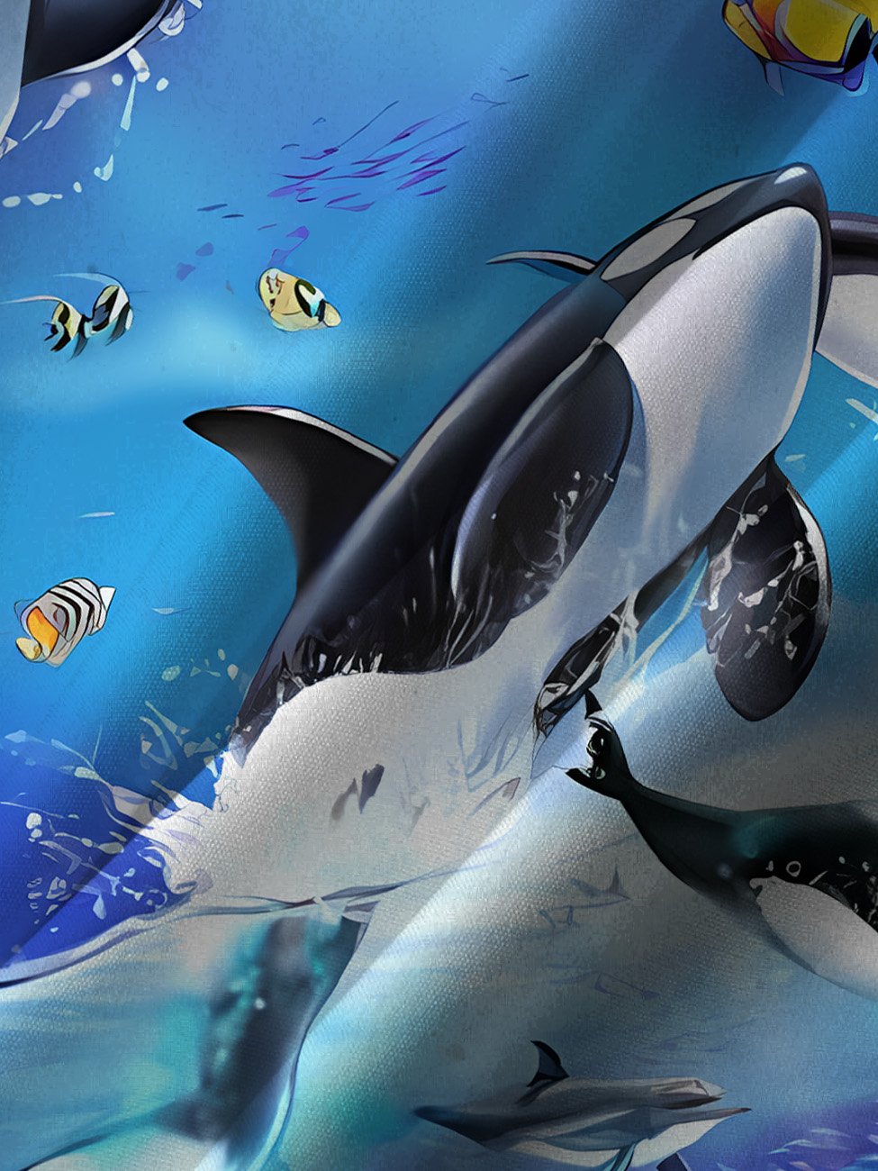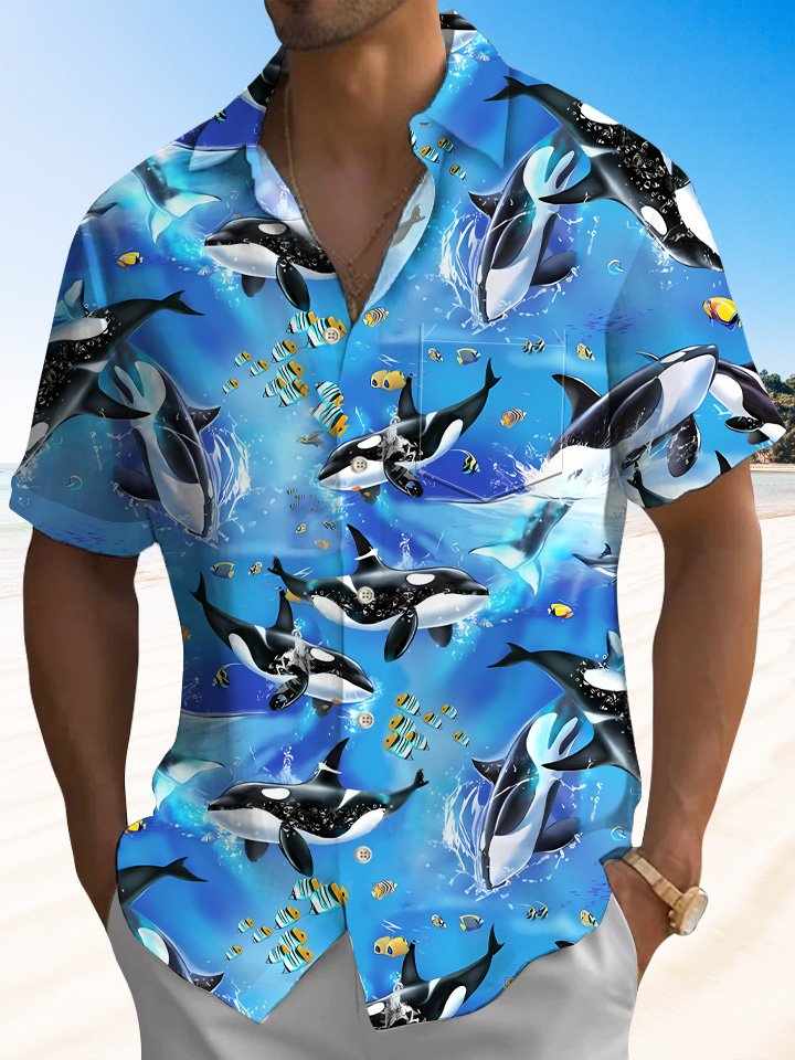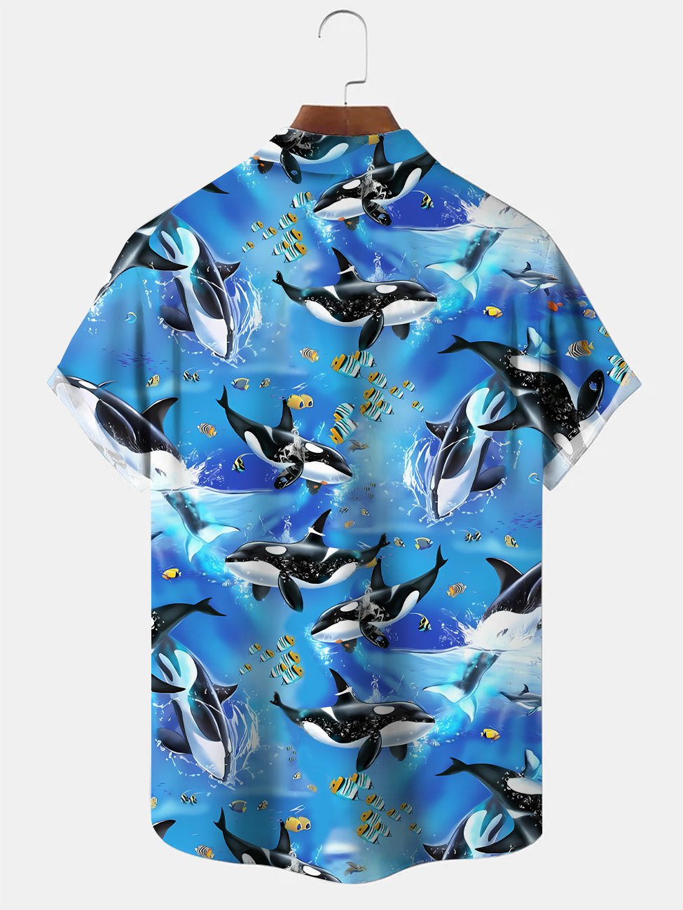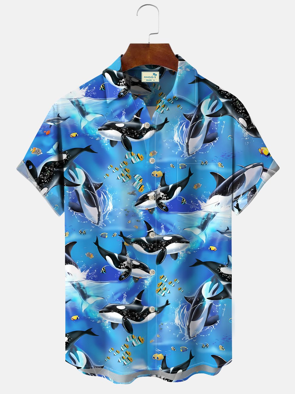 Camisa informal de manga corta con bolsillos y botones con diseño de ballena y cocotero de Alohadaddy