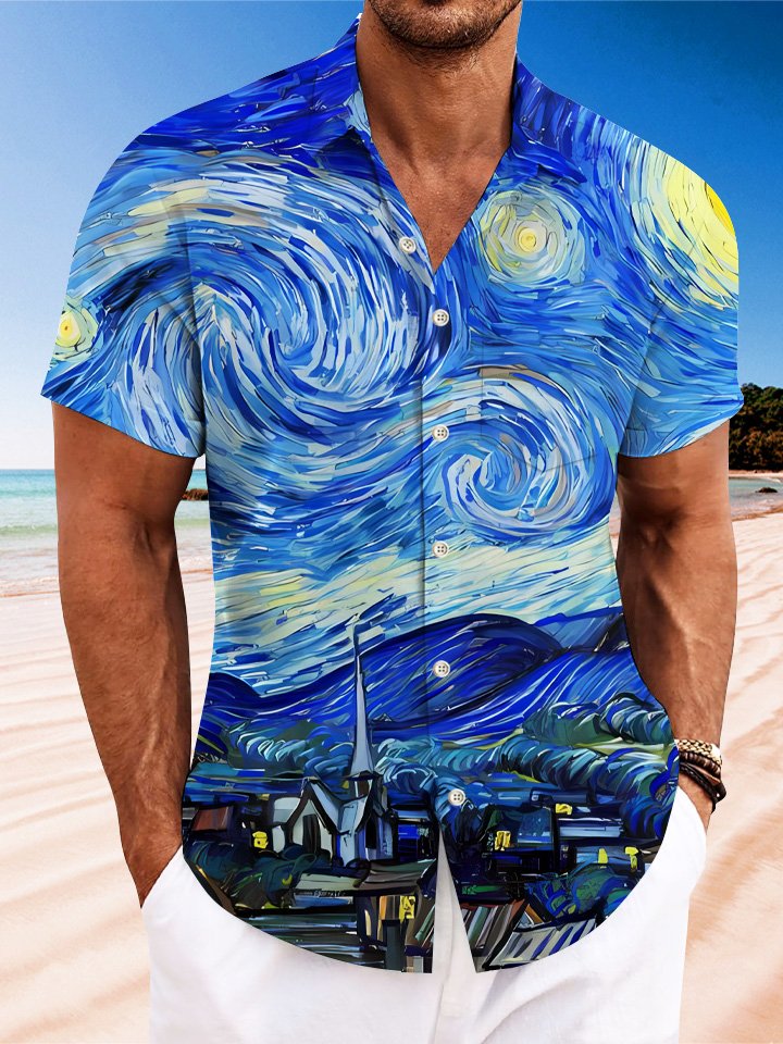 Camisa de manga corta de poliéster con bolsillos y botones para hombre con pintura al óleo de verano de Alohadaddy Monet