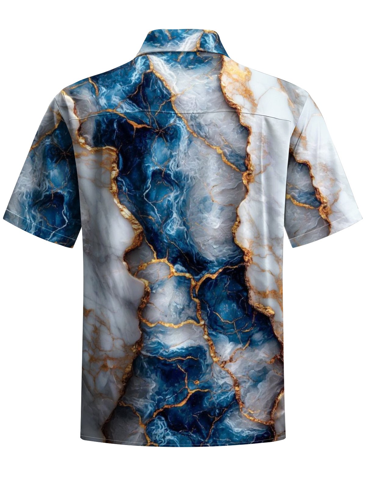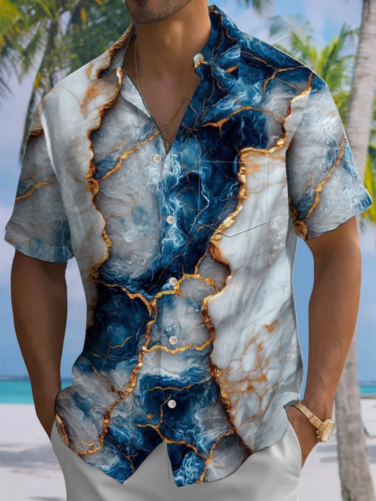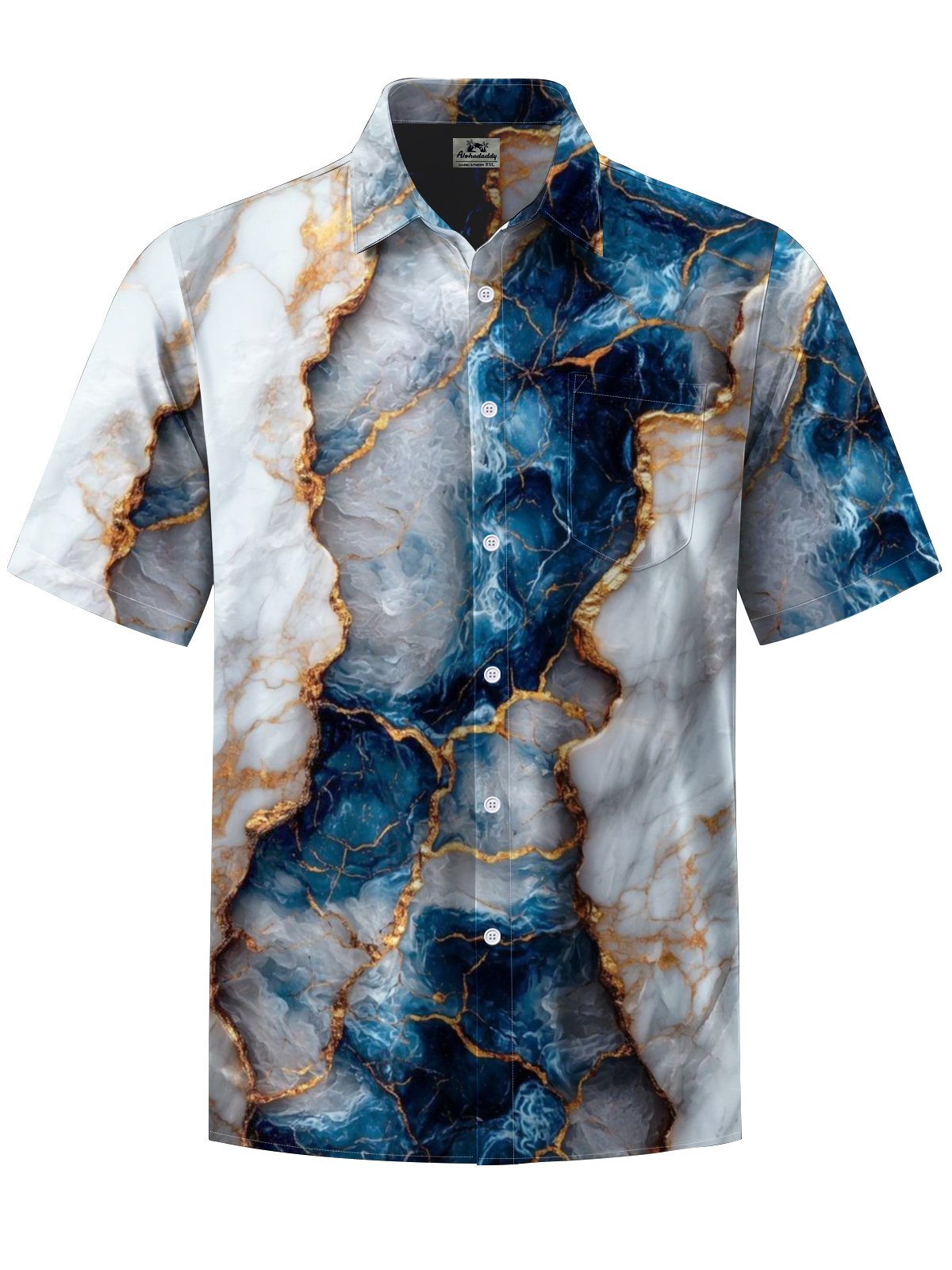 Alohadaddy® Casual Marble Print Pocket Men's Stretch Short Sleeve Shirt Big & Tall