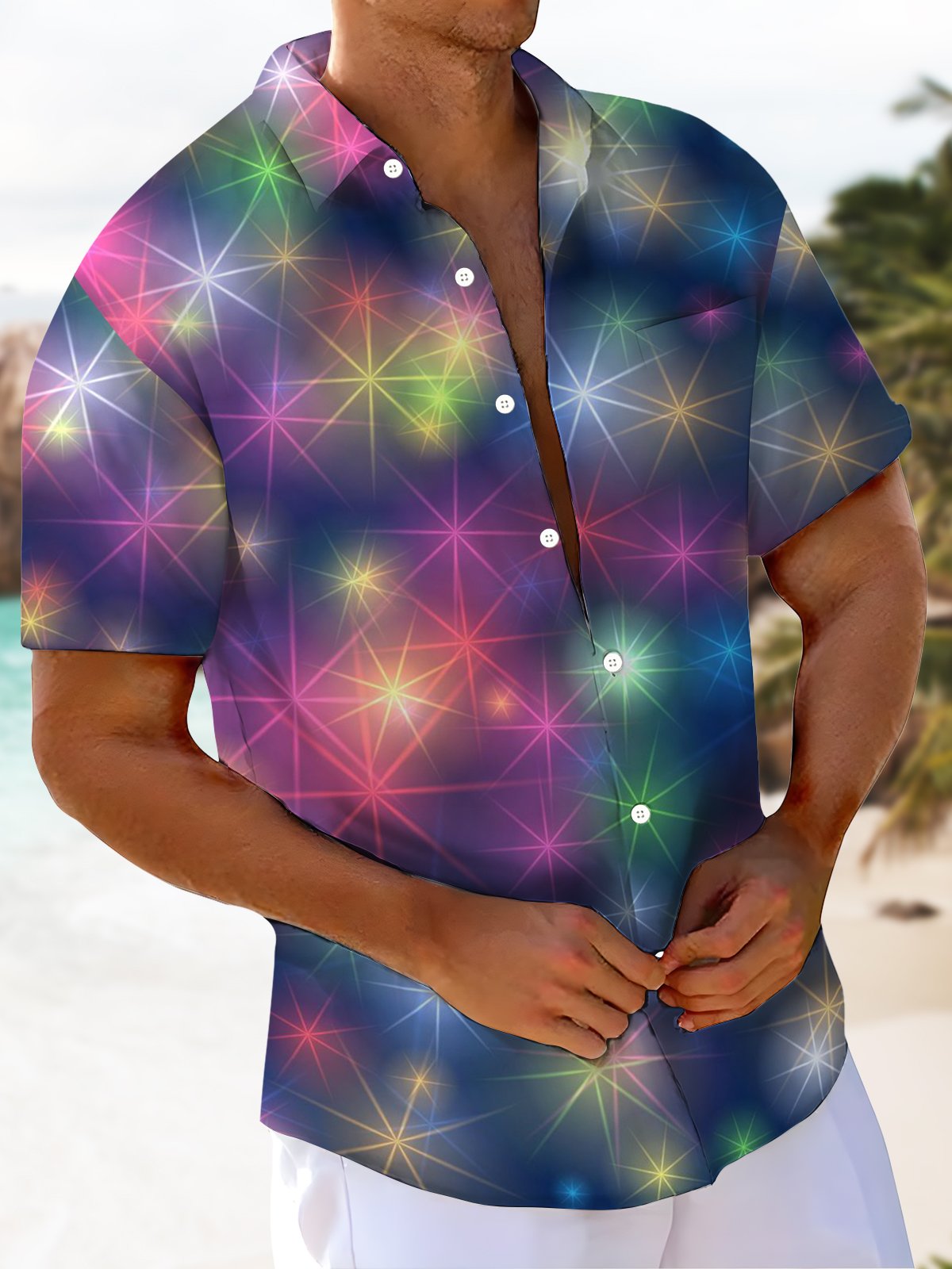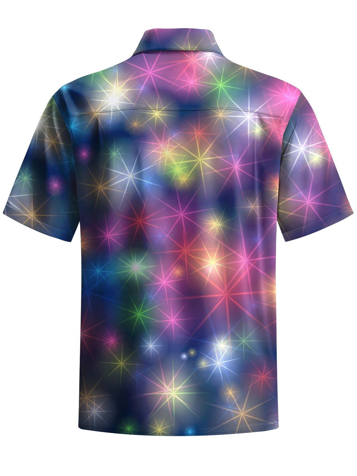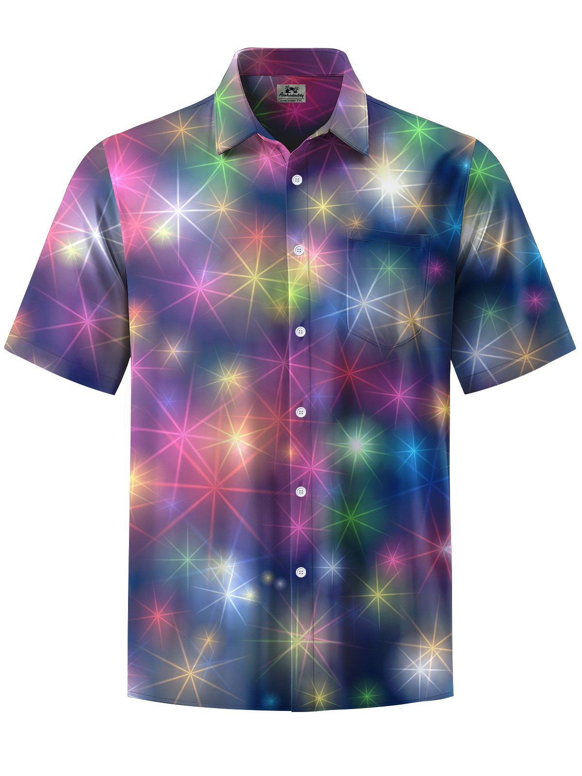 Alohadaddy® Casual Star Art Print Pocket Stretch Men's Short Sleeve Shirt Big & Tall
