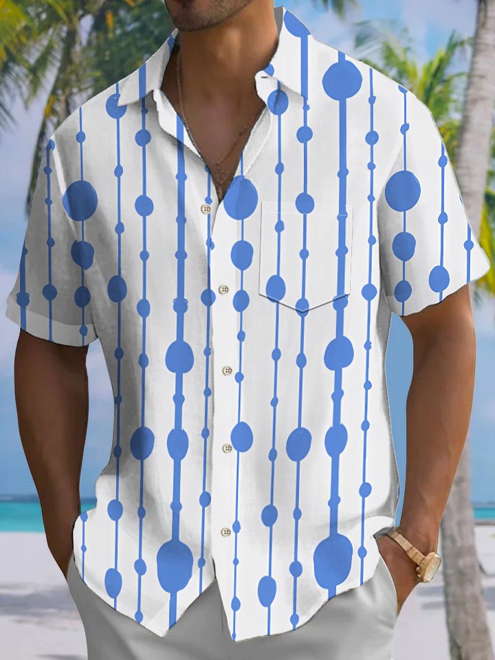 Alohadaddy® Casual Stripe Printed Chest Pocket Men's Short Sleeve Shirt Big & Tall