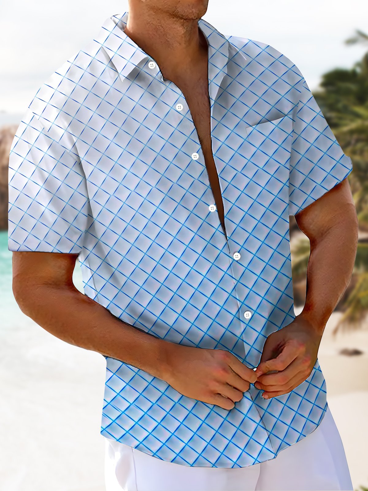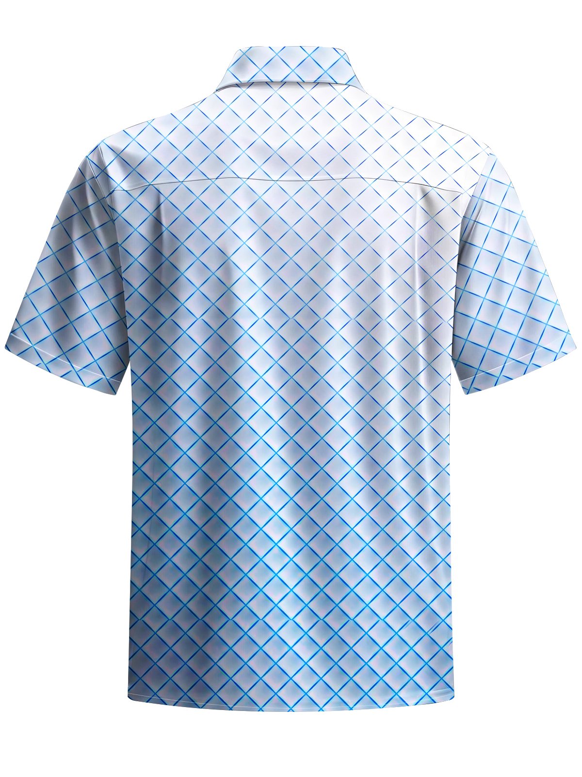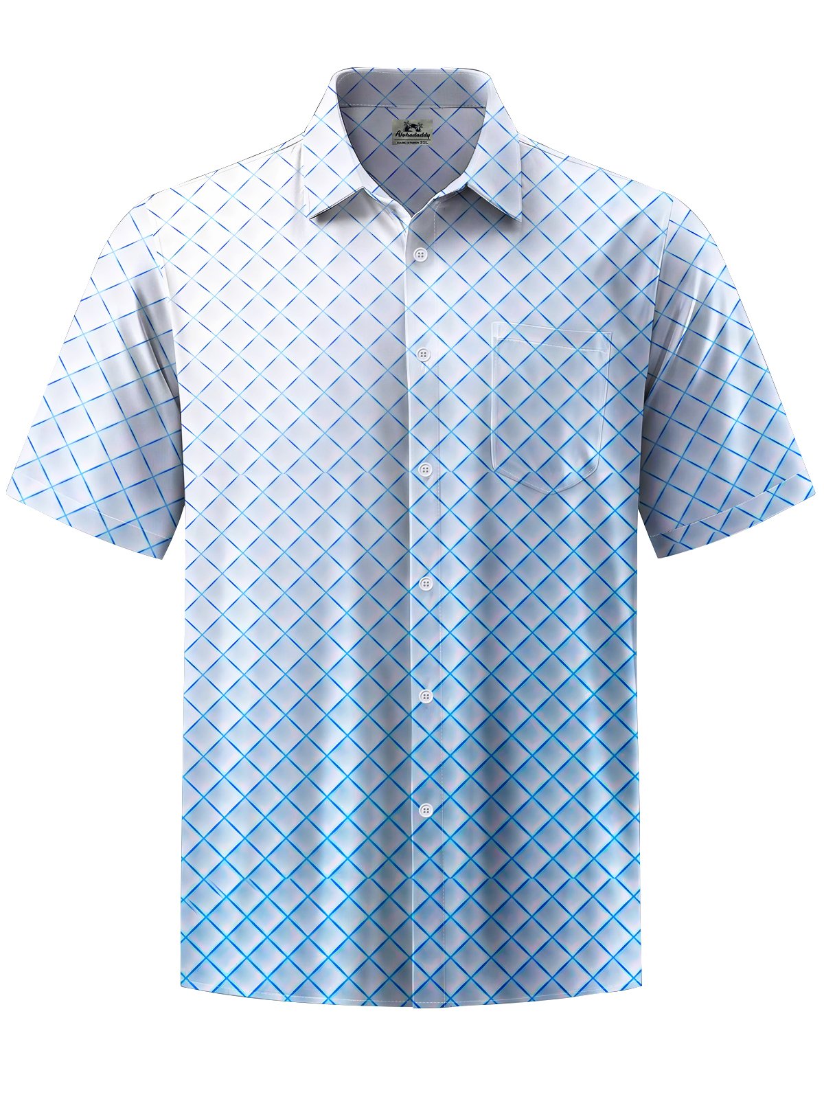 Alohadaddy® Hawaiian Plaid Ombre Art Print Chest Pocket Men's Short Sleeve Shirt Big & Tall
