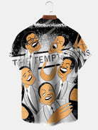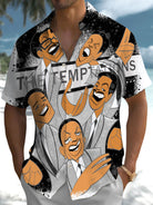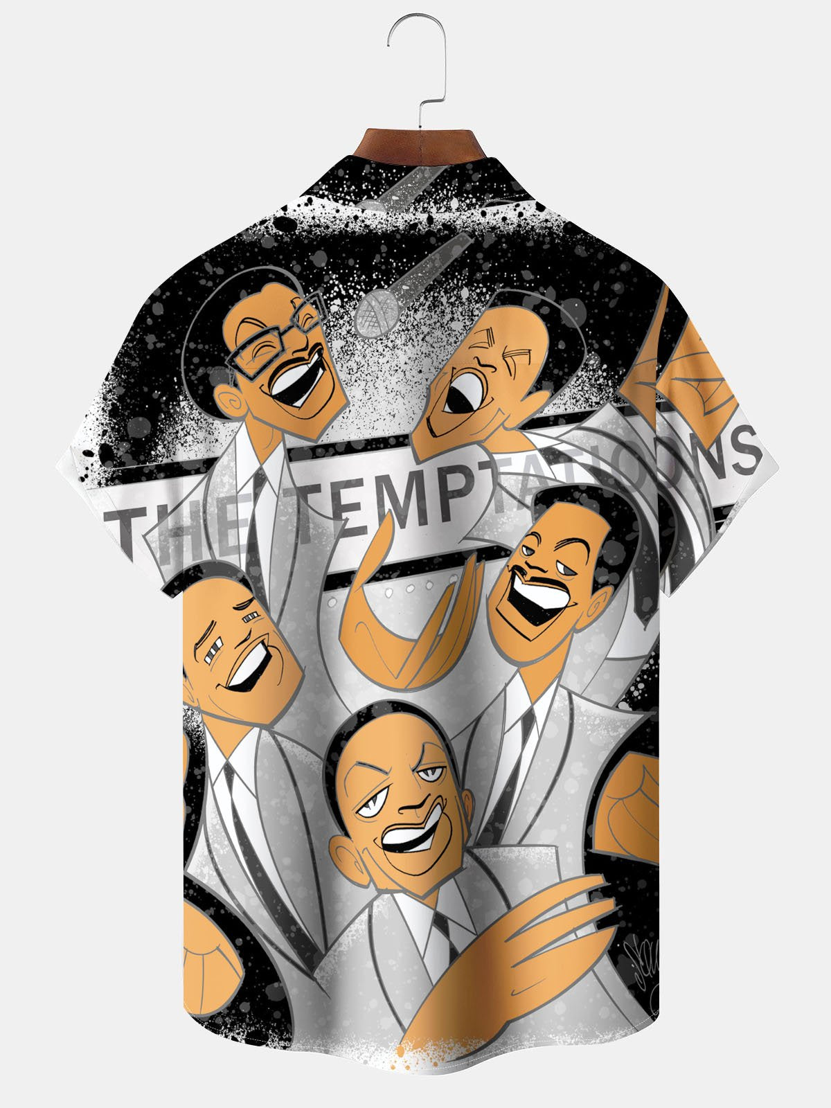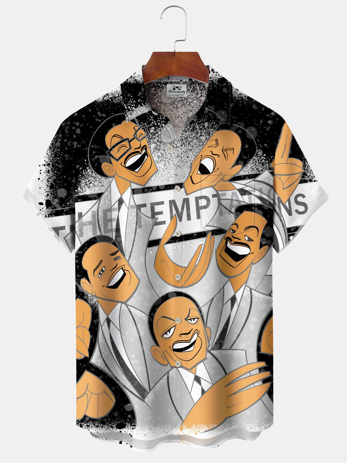 Alohadaddy® Retro Cartoon Atom Print Pocket Stretch Men's Short Sleeve Shirt Big & Tall