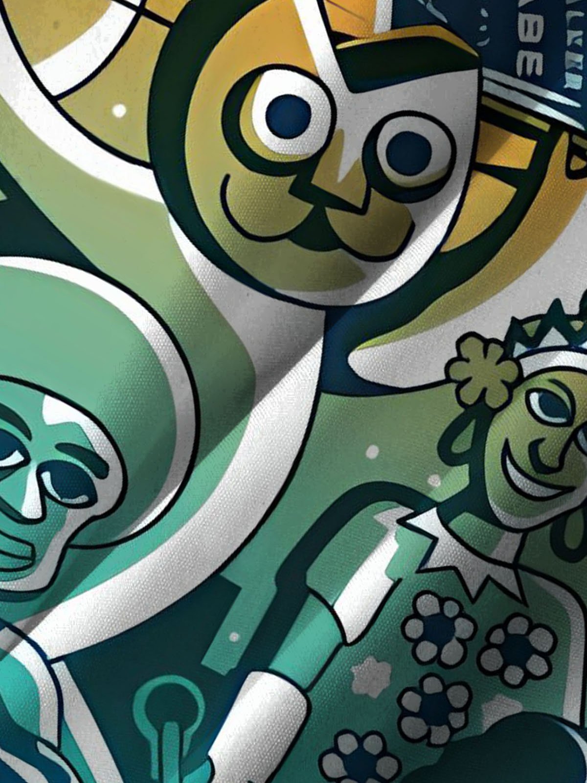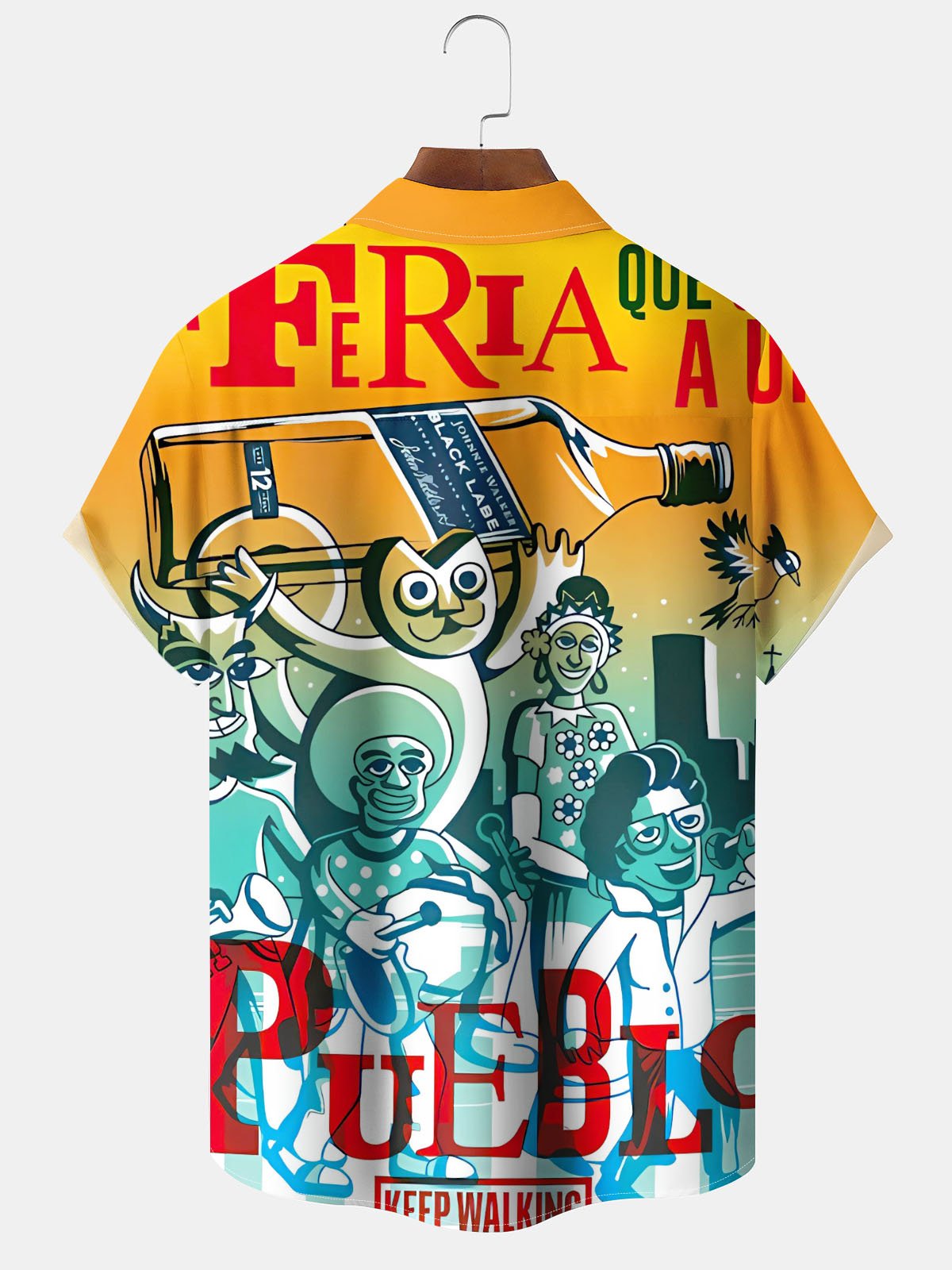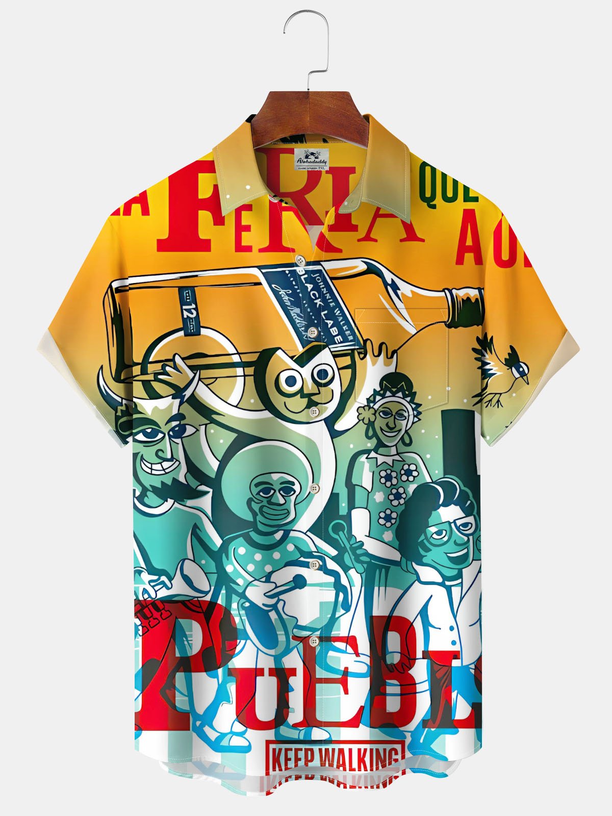 Alohadaddy® Retro Cartoon Poster Concert Print Pocket Stretch Men's Short Sleeve Shirt Big & Tall