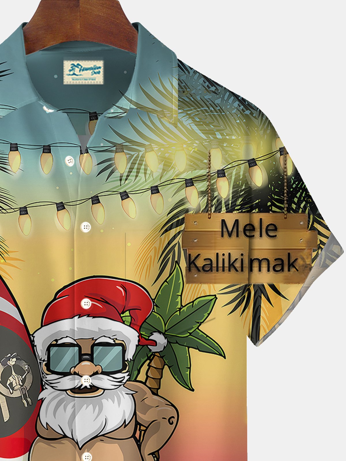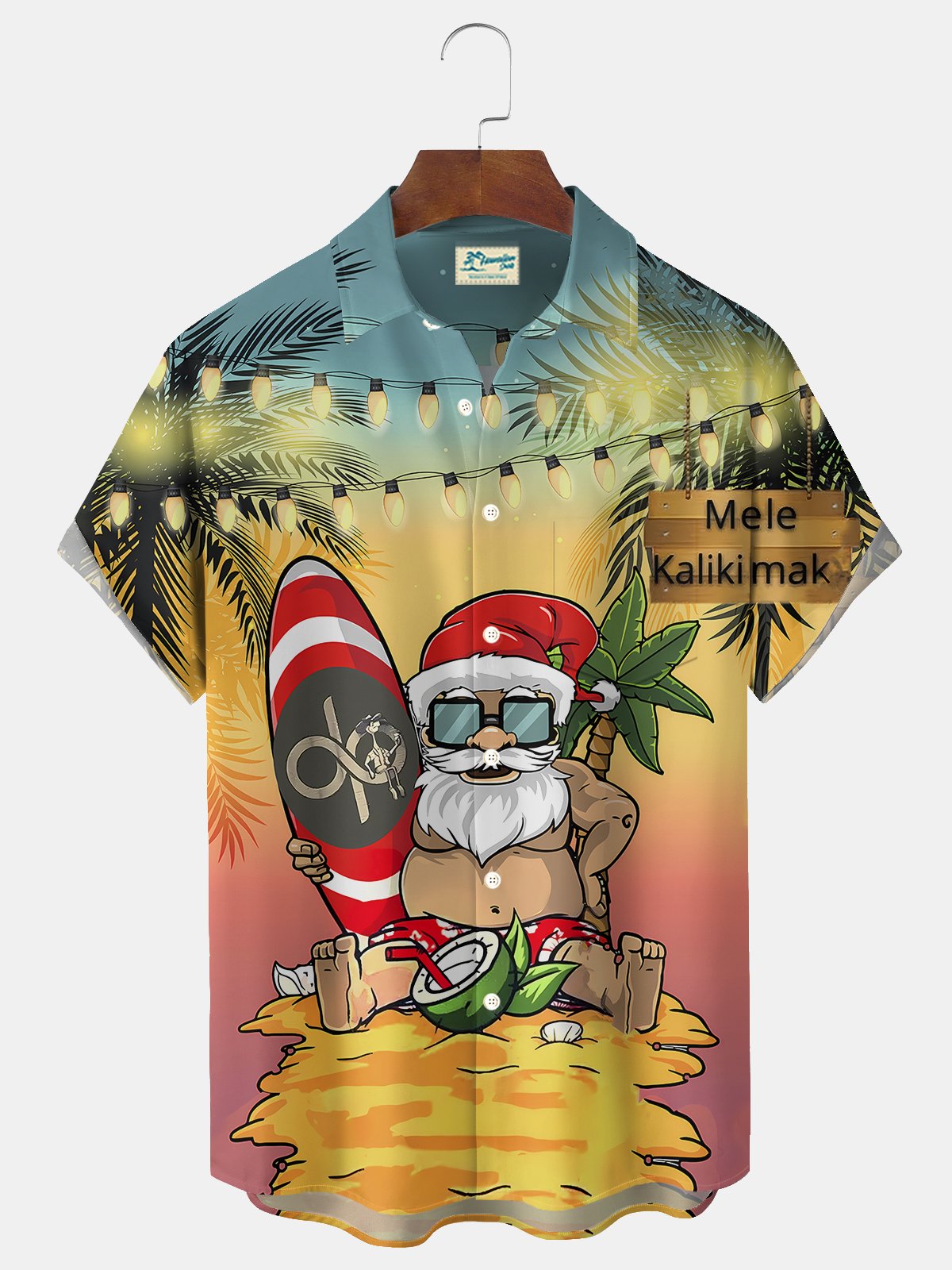 Camisa de manga corta con bolsillo abotonado para hombre con estampado de luces de playa navideñas de Alohadaddy