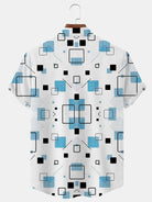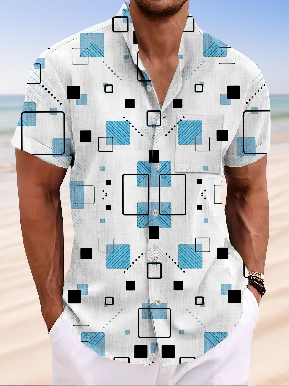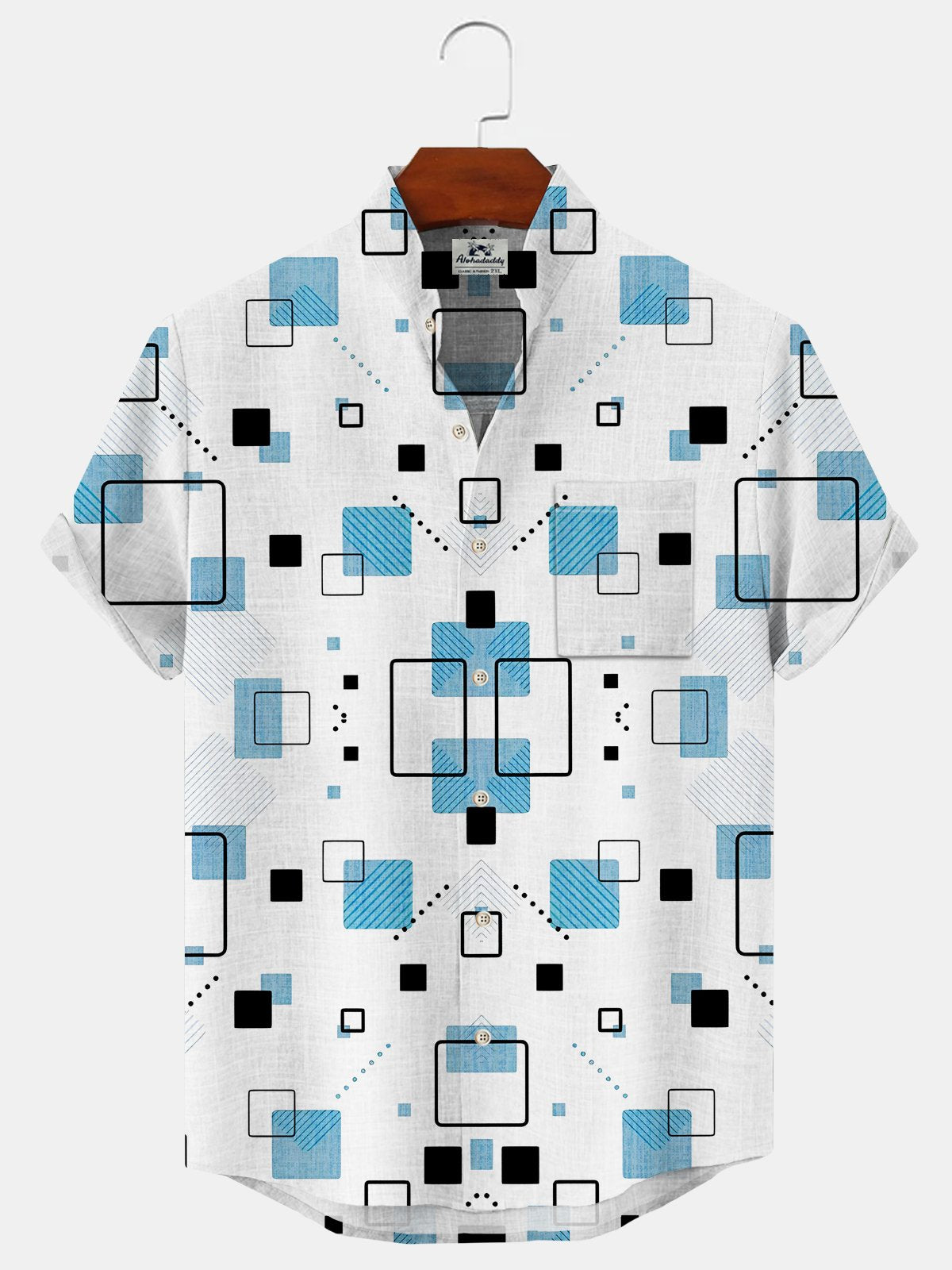 Alohadaddy Geometric Button Pocket Casual Short Sleeve Stand Collar Shirt