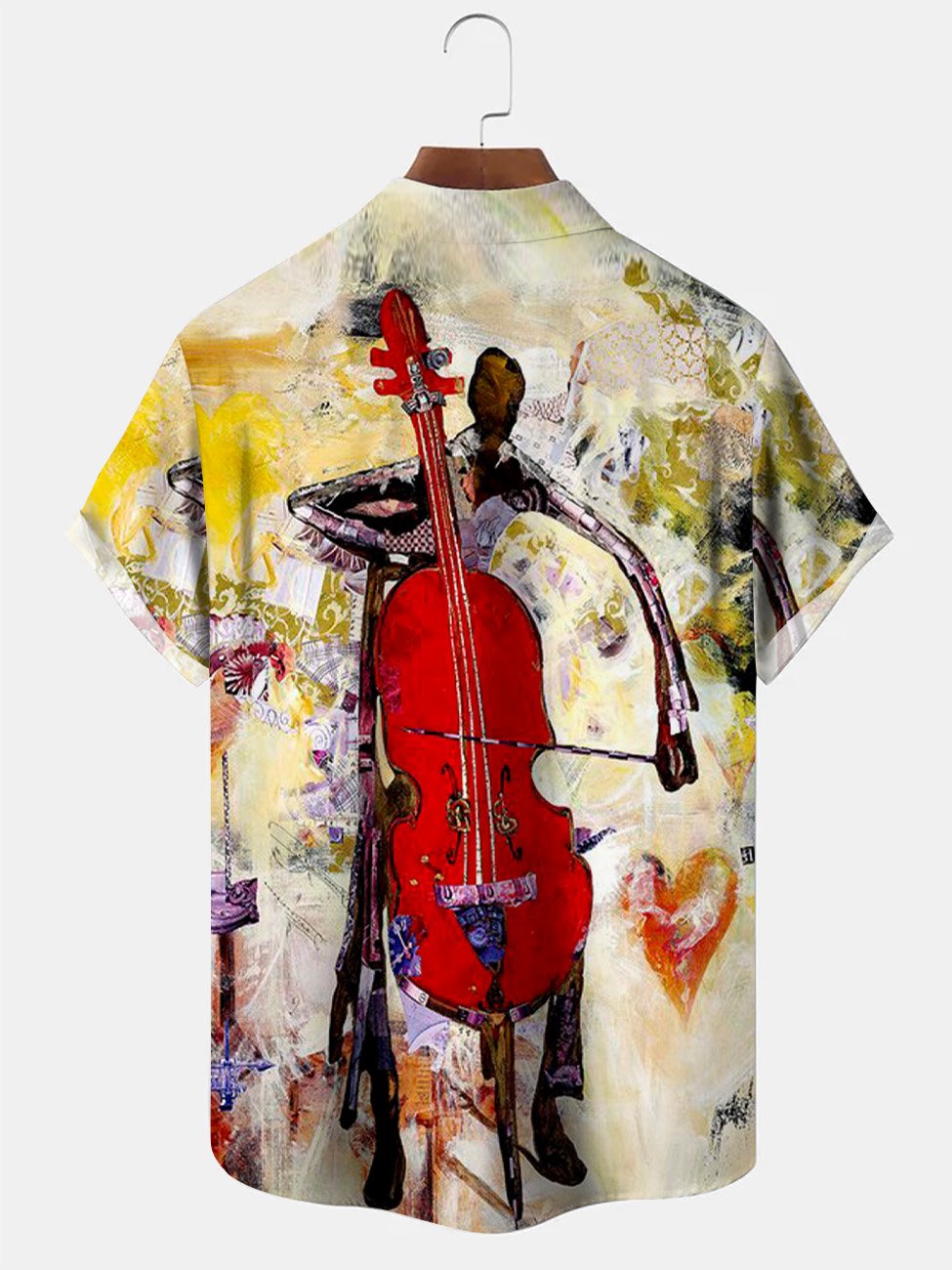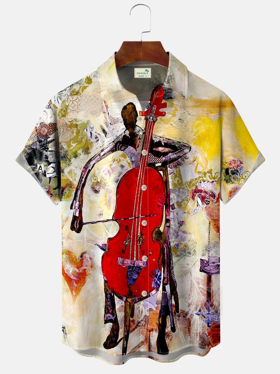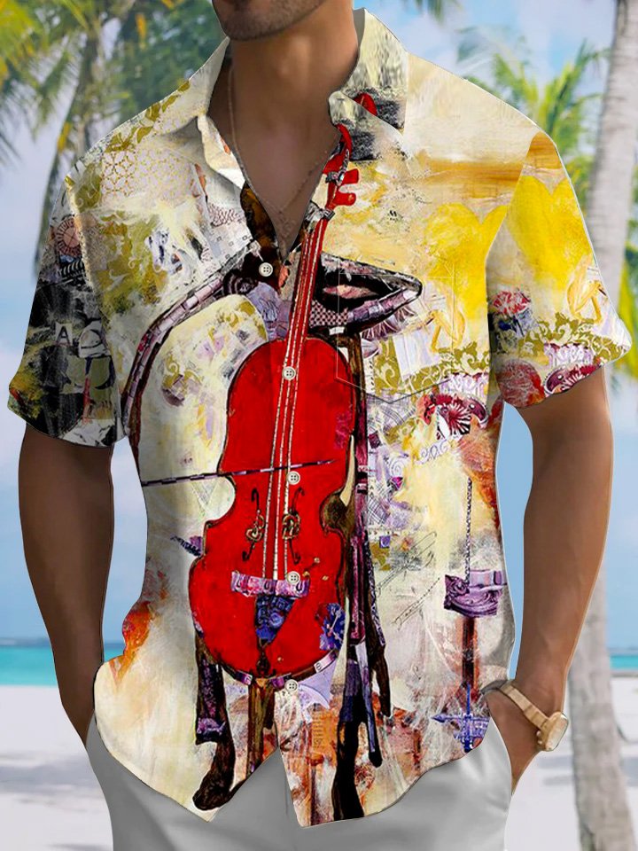 Camisa casual de manga corta con botones y bolsillo para hombre con pintura al óleo y arte musical de Alohadaddy